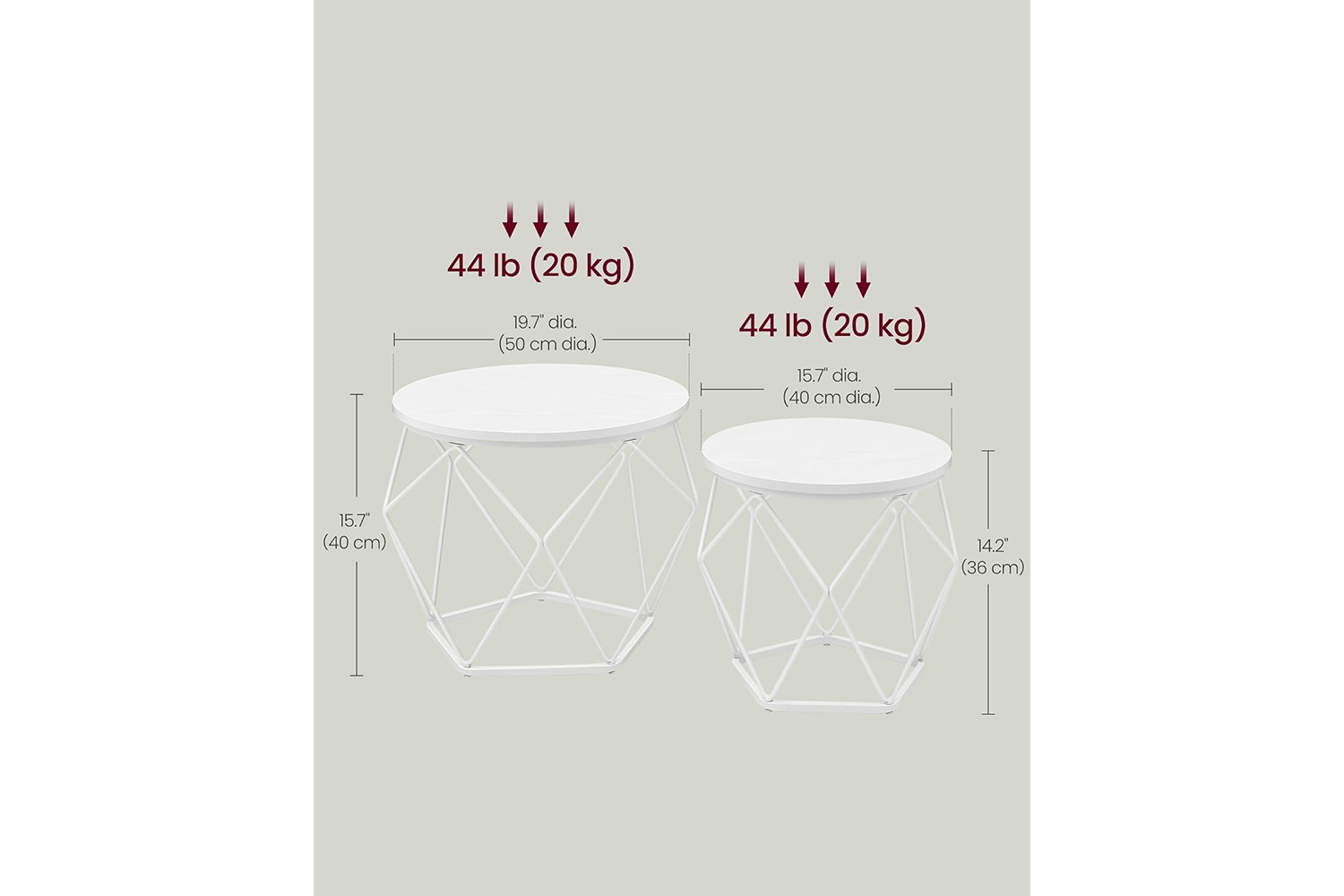 The mix of quality particleboard and sturdy steel frame makes this side table set stable so that it won't wobble every time you pick up your coffee cup. Each small table can support up to 20 kg.