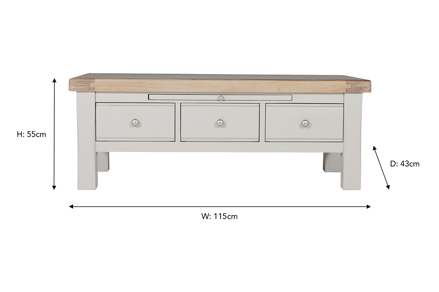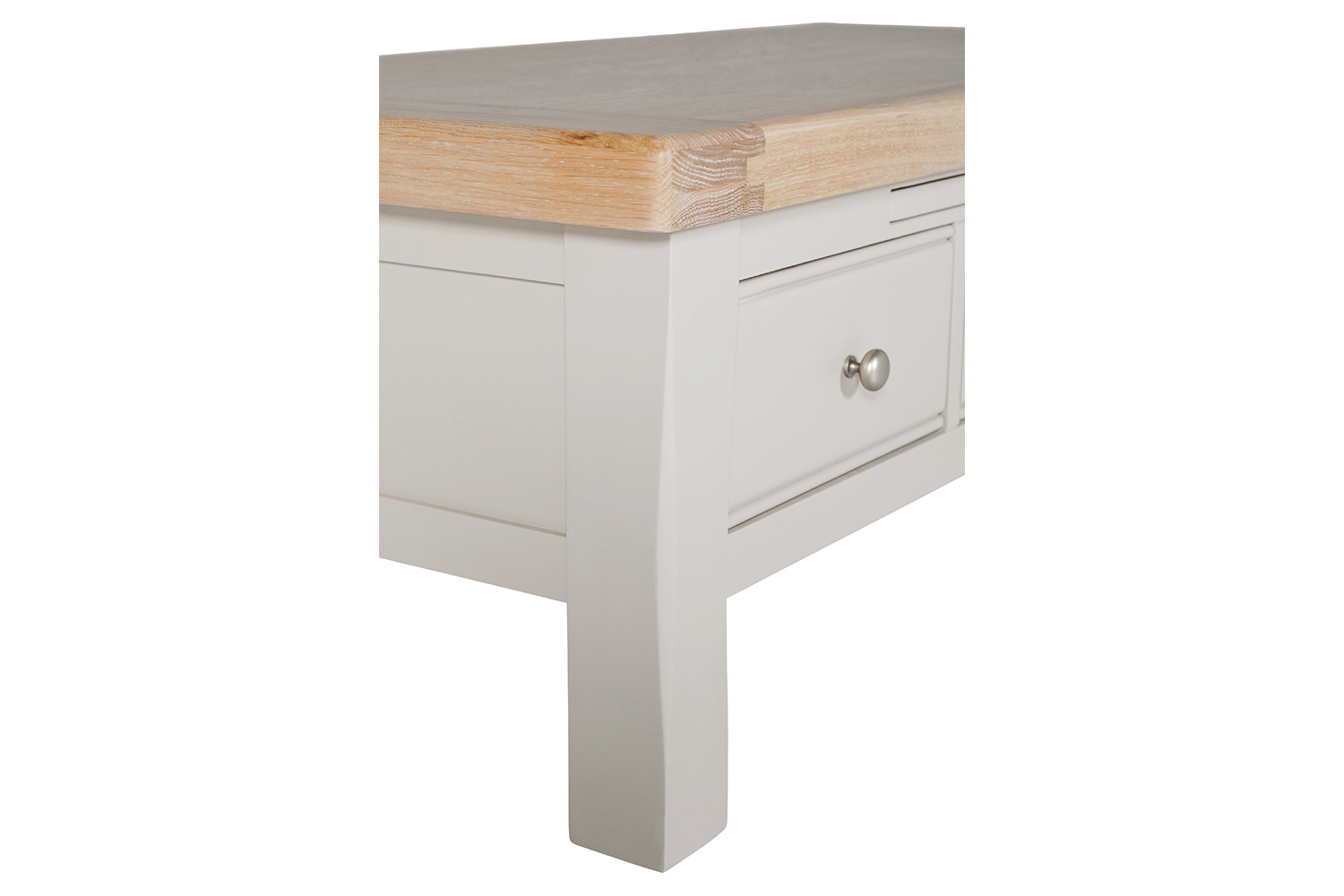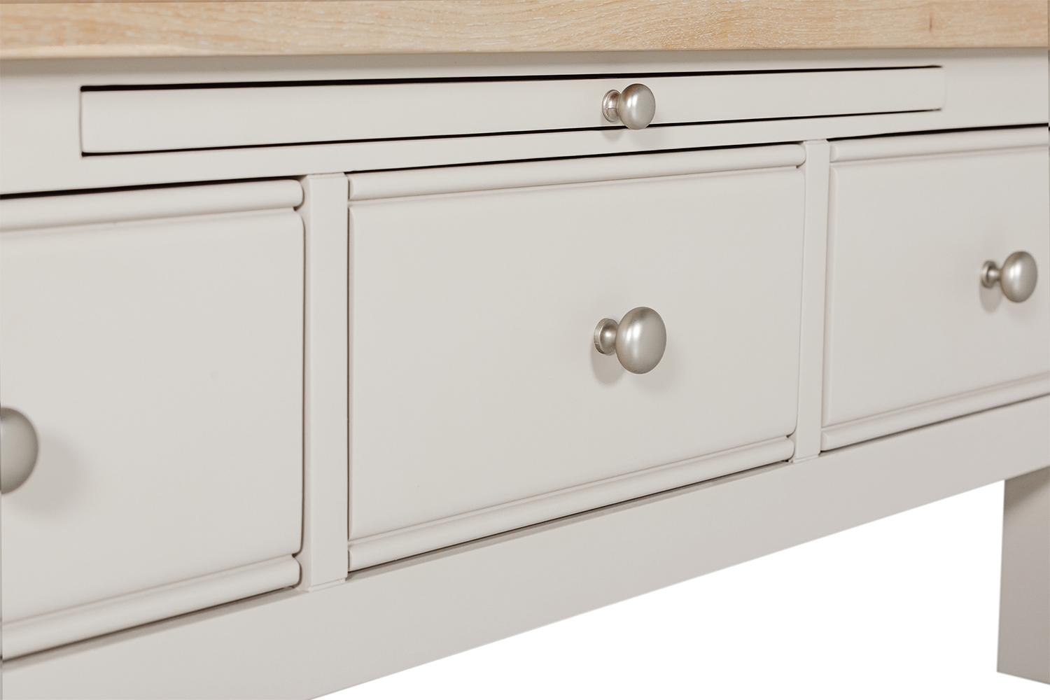 Keep your home clutter-free with the classic Winnie Hall Stand, a functional design that will enhance your sitting room decor for years to come. The tabletop showcases a stunning natural wood grain that adds a touch of warmth and character to any room. While the legs feature a painted finish adding a modern touch to this traditional design. It features three drawers and a pull-out shelf, perfect for keeping essential items close to hand. Pair with the matching furniture to bring warmth, beauty, and practicality to your home.
