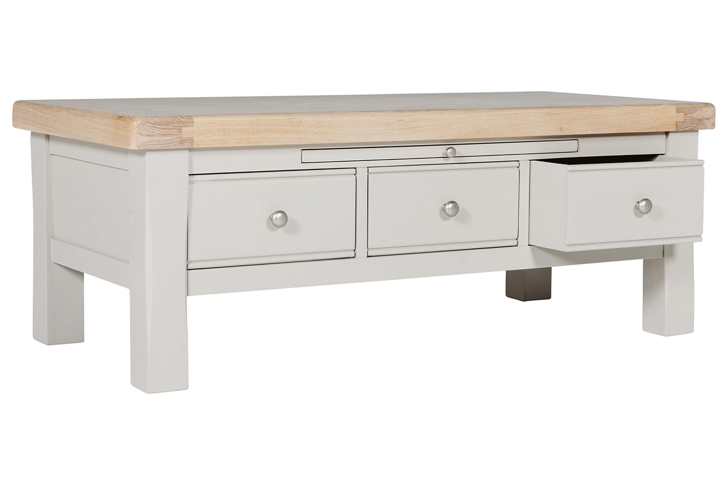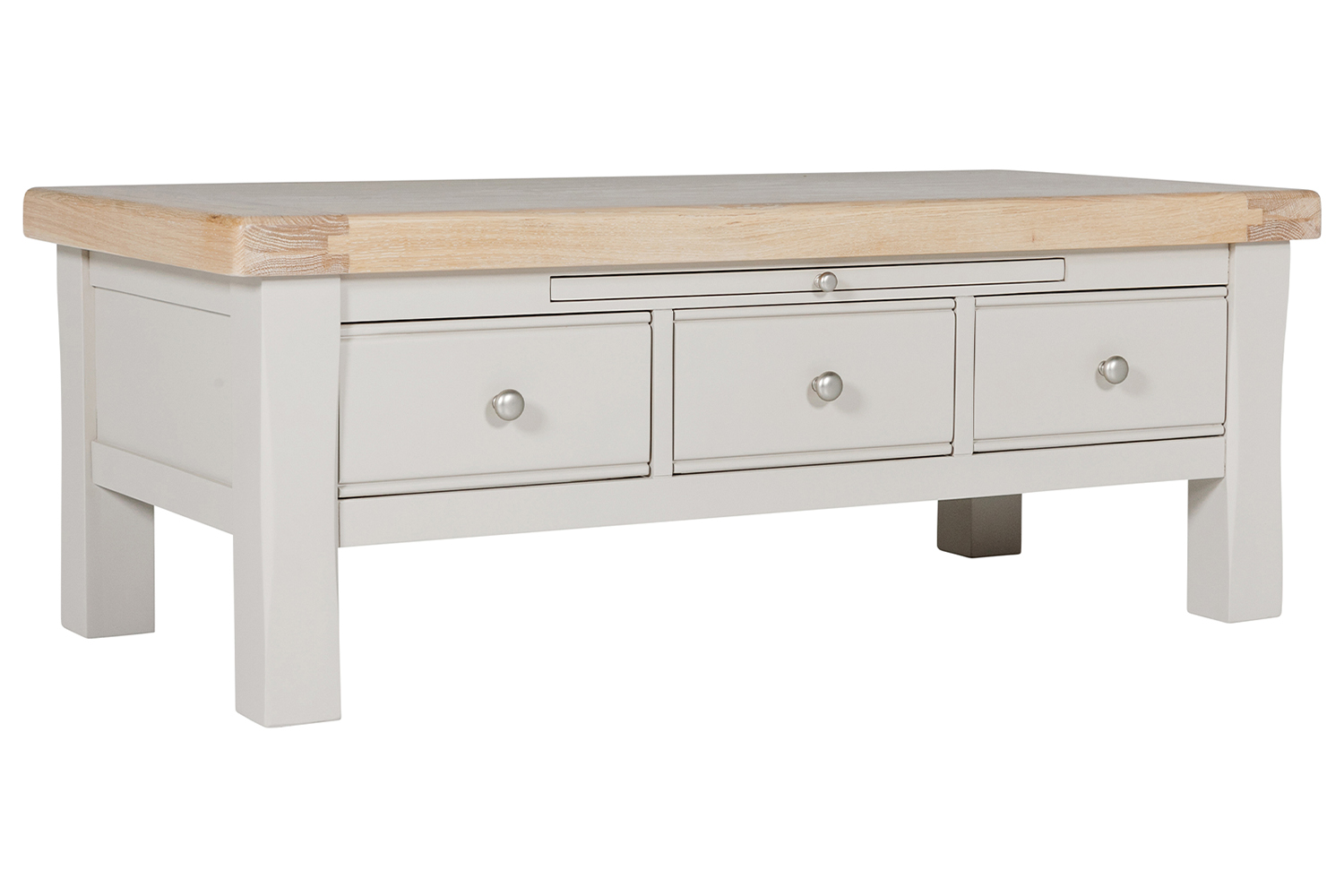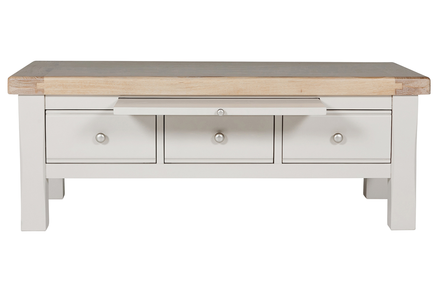 Keep your home clutter-free with the classic Winnie Hall Stand, a functional design that will enhance your sitting room decor for years to come. The tabletop showcases a stunning natural wood grain that adds a touch of warmth and character to any room. While the legs feature a painted finish adding a modern touch to this traditional design. It features three drawers and a pull-out shelf, perfect for keeping essential items close to hand. Pair with the matching furniture to bring warmth, beauty, and practicality to your home.