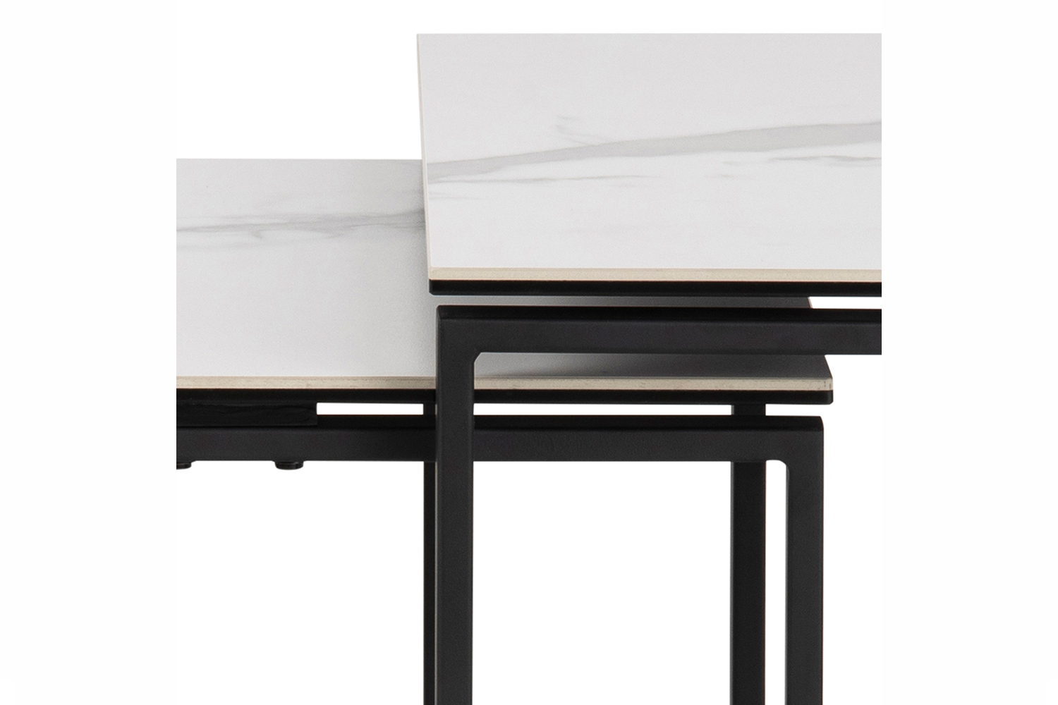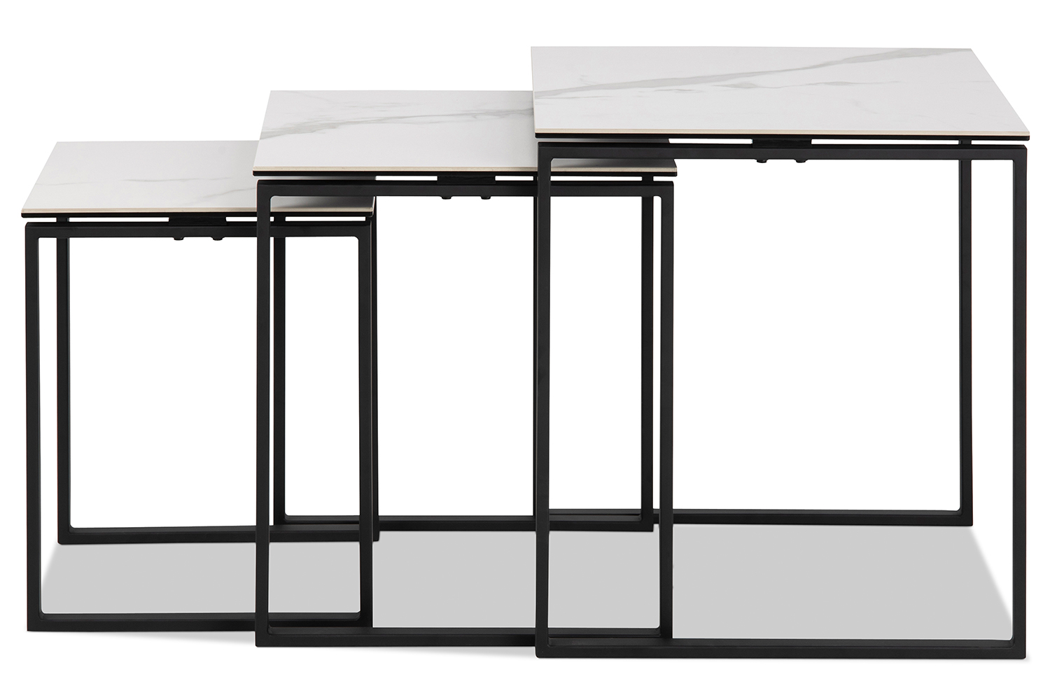 Demonstrating an innovative design, the set includes three tables that can be neatly stored away when not in use; perfect for those who love to host but are short on space. The marble tops are a breeze to clean while the chrome metal frame ensures a secure base.