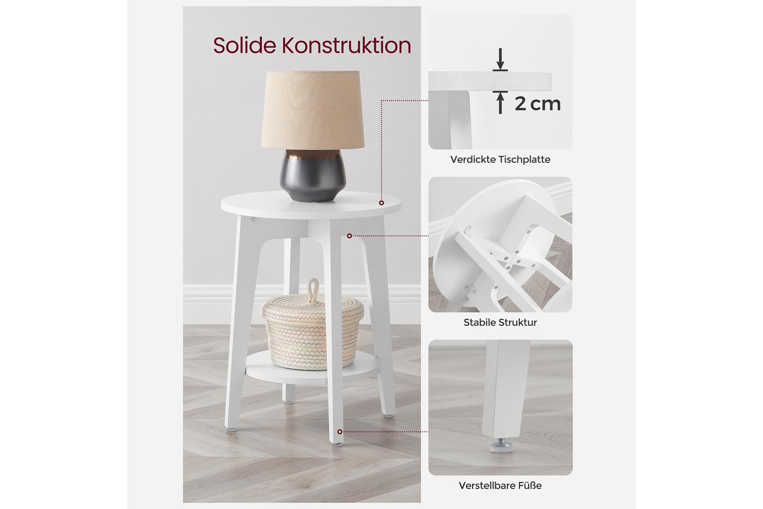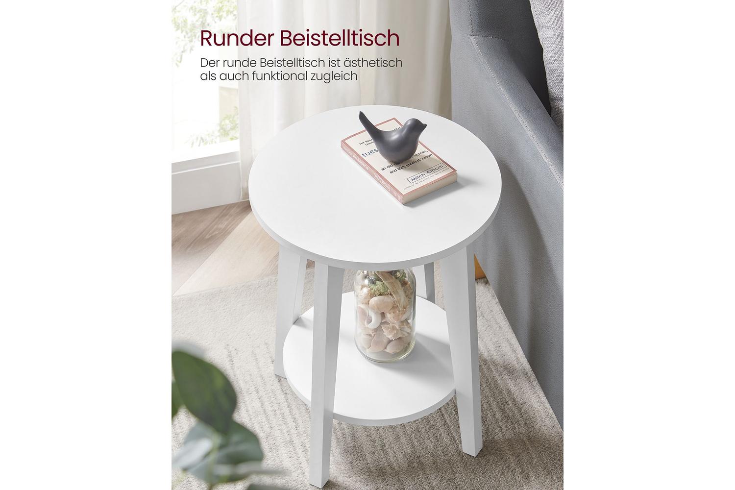 Crafted from durable chipboard and finished in a crisp white, the VASAGLE End Table is built to last while maintaining a light, airy feel that brightens up any space. Its compact size—measuring 40 cm in diameter and 50 cm in height—makes it ideal for smaller rooms or apartments, fitting neatly beside sofas, armchairs, or beds. The sturdy construction supports up to 90 kg, ensuring it can handle everything from decorative accents to heavier items with ease.