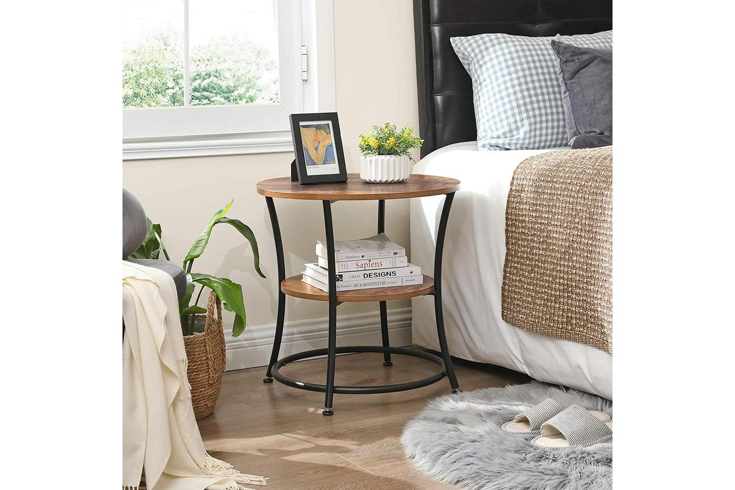 Crafted from durable particleboard and sturdy metal, the VASAGLE Side Table offers a robust surface for your daily essentials. The rustic brown finish adds warmth and character, making it a perfect fit for Irish living rooms, bedrooms, or even hallways. Its round 55 cm diameter provides ample space for your morning cuppa, books, or decorative items, while the lower shelf is ideal for storing magazines, remote controls, or baskets.
