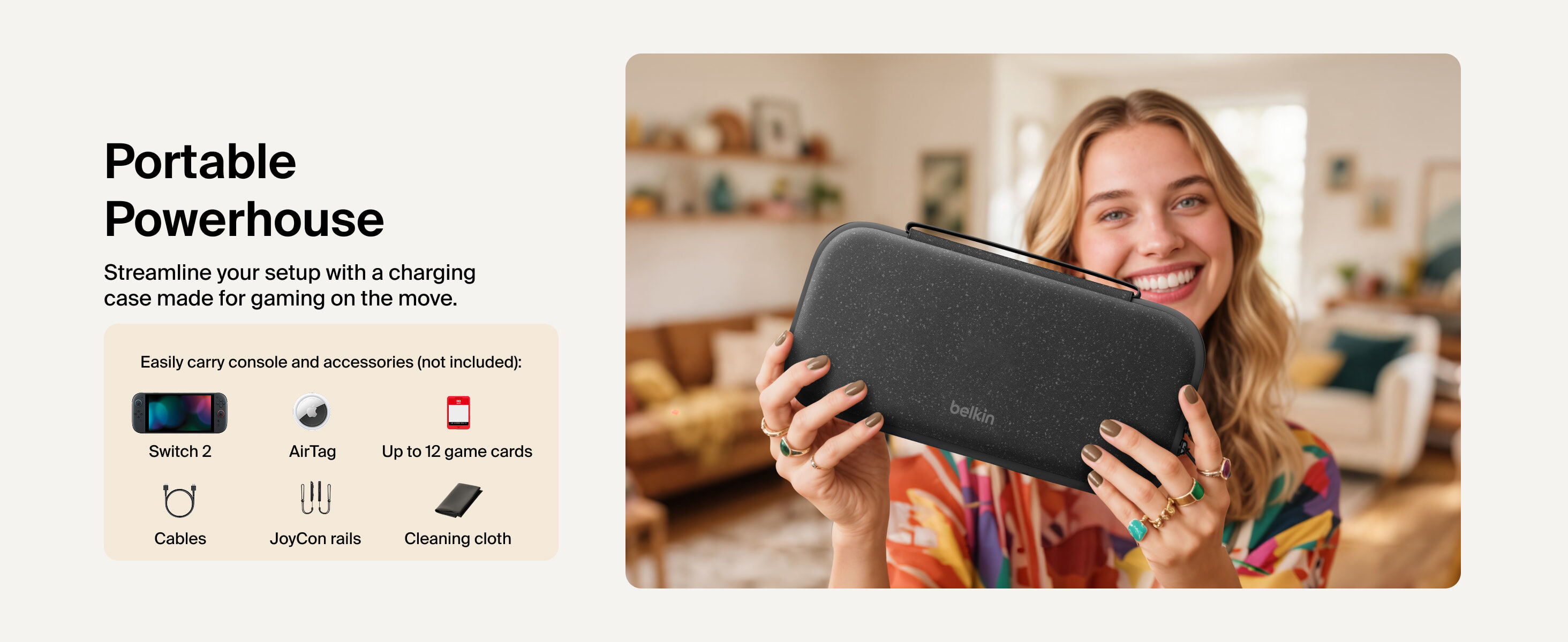 Belkin Gaming Nintendo Switch 2 Charging Case & Power Bank | Charcoal