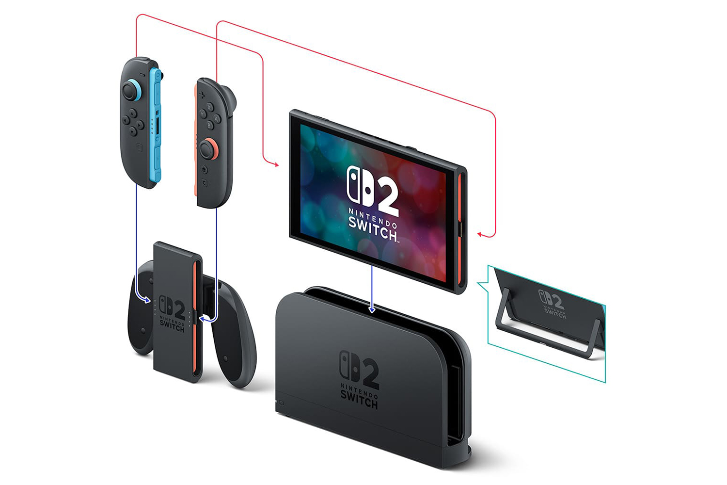Snap the new joy-con 2 controllers into place with magnetic connectors. Each controller can even be used as a mouse in compatible games.