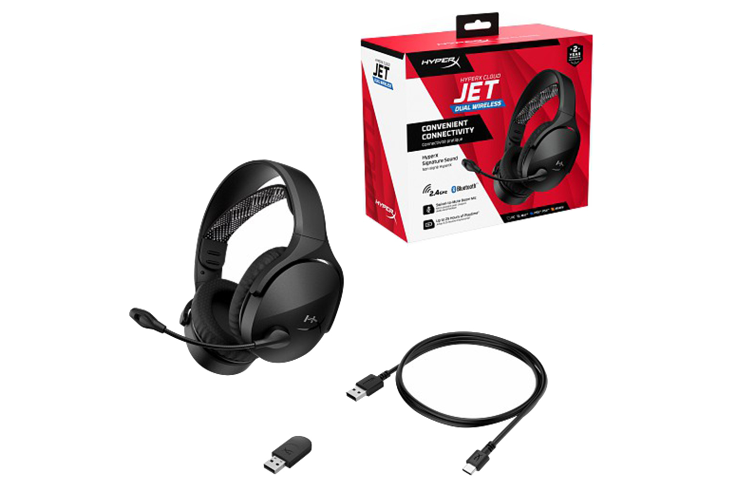 Experience the HyperX Cloud Jet headset, designed for both newcomers and gamers upgrading their gear. With dual wireless connectivity (2.4GHz and Bluetooth 5.3), you can effortlessly switch between PC, console, and mobile devices while enjoying rich audio from 40mm drivers. The swivel-to-mute boom mic ensures clear communication, and with up to 25 hours of battery life , you can game longer without interruptions. Its lightweight design and breathable mesh earpads provide ultimate comfort for extended sessions. Elevate your gaming experience with the HyperX Cloud Jet!