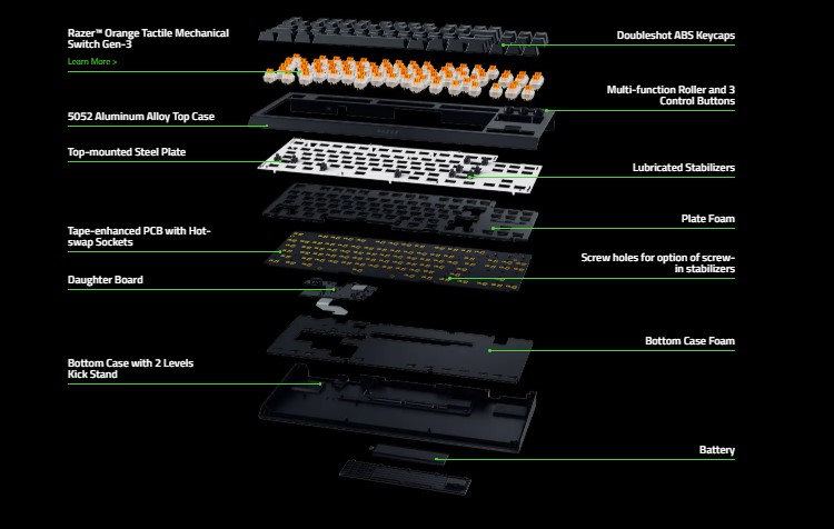 Hot-swappable Design: Pre-loaded Razer Orange Tactile Switches Gen-3