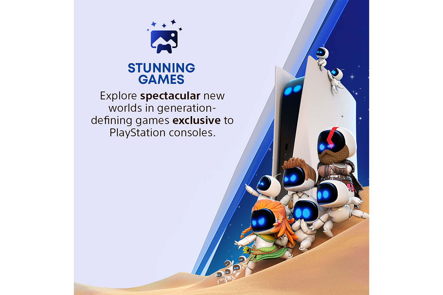 Experience lightning fast loading with an ultra-high speed SSD, deeper immersion with support for haptic feedback, adaptive triggers, and 3D Audio[2], and an all-new generation of incredible PlayStation games.