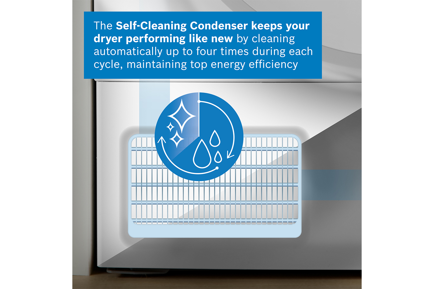Heat Pump Dryers with the Self-Cleaning Condenser care for your clothes while remaining highly energy efficient. Self-Cleaning Condenser technology automatically cleans the condenser up to four times during the drying process, which maintains energy efficiency cycle after cycle. Heat Pump Dryers from Bosch are designed to run efficiently while gently drying your clothes.