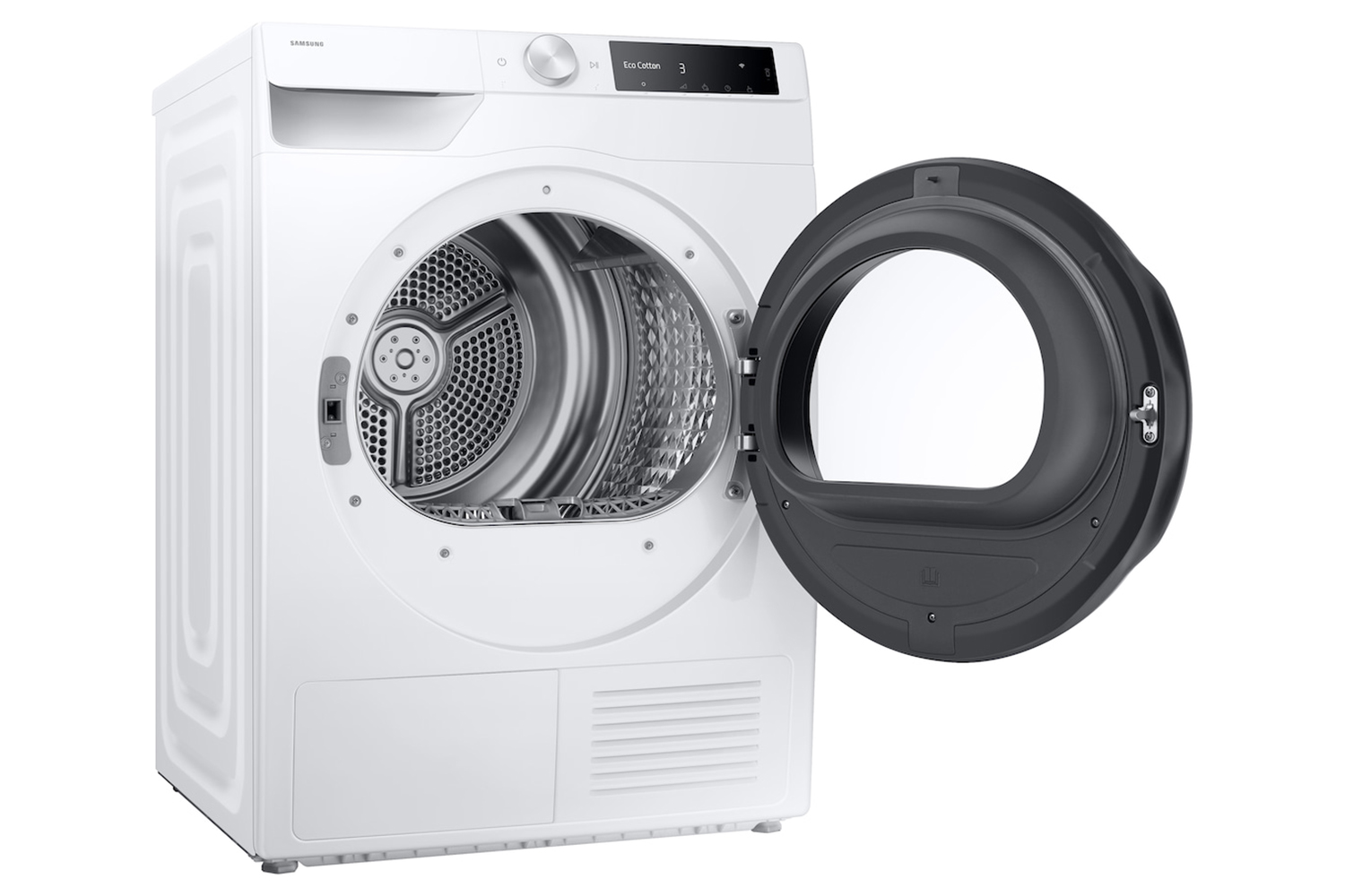 * Based on an AI-created algorithm. Actual results may vary depending on individual use.** Tested on the Samsung DV8400D compared with Samsung DV5000D on Eco Cotton and AI Dry+ cycle. Use blended shirts of 2kg load.***Based on an advanced AI algorithm, utilizing weight, moisture content and drying temperature data, it can detect four types of fabric: normal, denim, towels and delicates.**** Must check the clothing care label before using the AI Dry+ cycle.