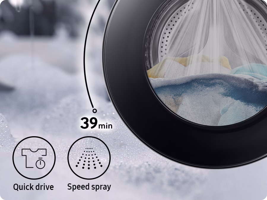 Bottomless laundry basket? Take the load off and power through your wash in just 39 minutes for a full clean. Whether it's the forgotten PE kit or that last minute outfit, you can spend less time washing and more time wearing.