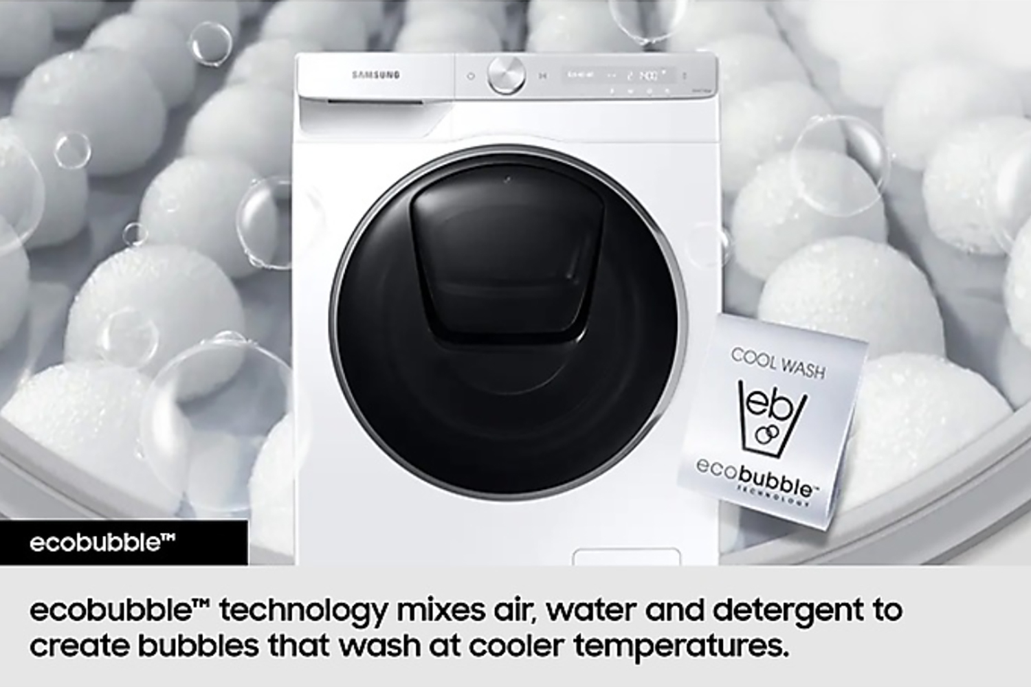 Meal time mess or grass stains? Whether it's cotton, synthetics or baby clothes, add a 30-minute bubble soak to your wash. Then let Samsung unique ecobubble technology go deep into the fabrics to loosen stubborn stains. You'll love how brilliant it gets your whites.