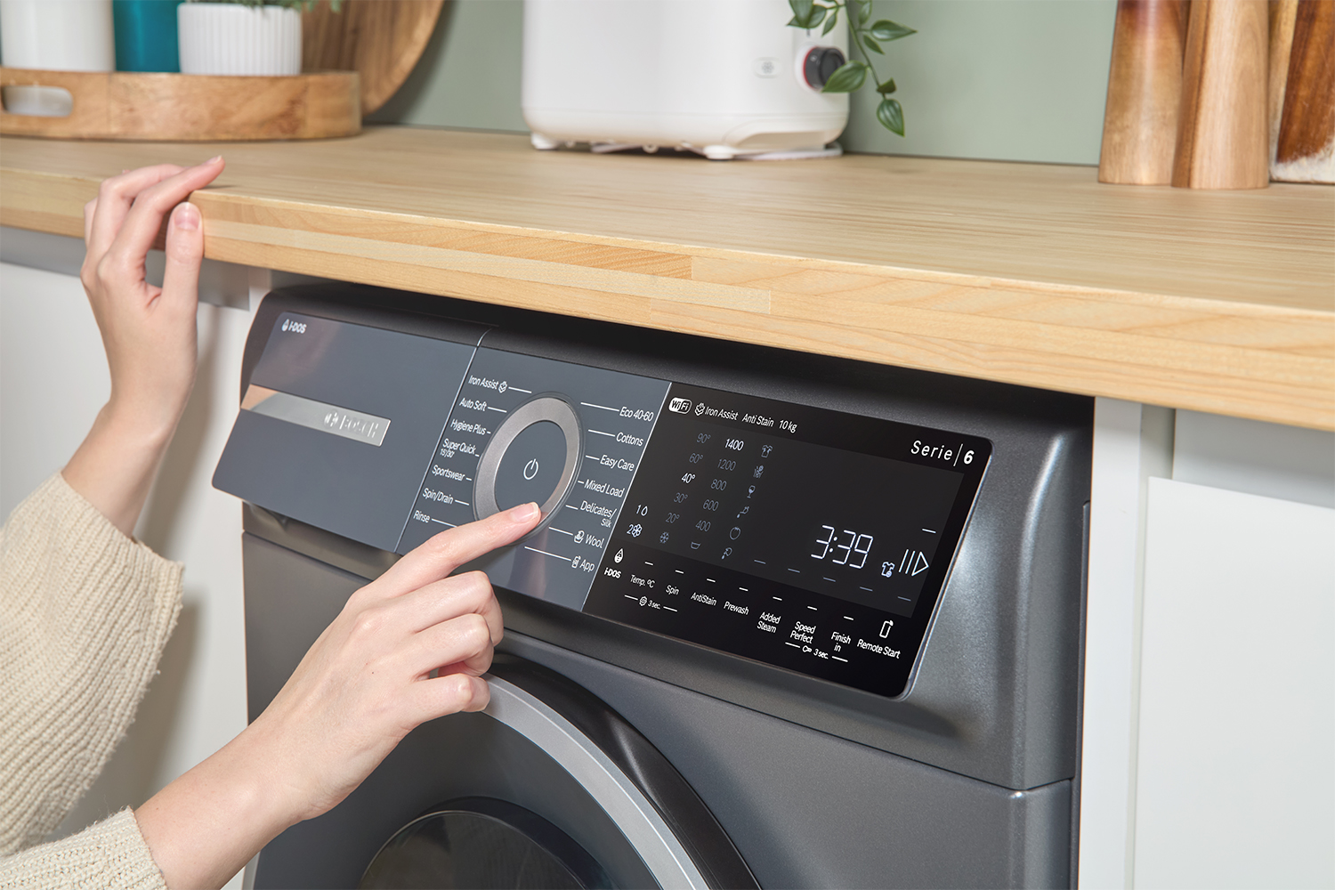 It's now even easier to save on both water and detergent, by skipping manual dosing. i-DOS with Detergent Scan automatically ensures your washer uses just the right amount of detergent and softener. With Detergent Scan, you can use your Home Connect app to scan your detergent and softener bottles to automatically set up optimal washer settings based on dosage and water hardness data, giving you perfect results whilst saving resources.