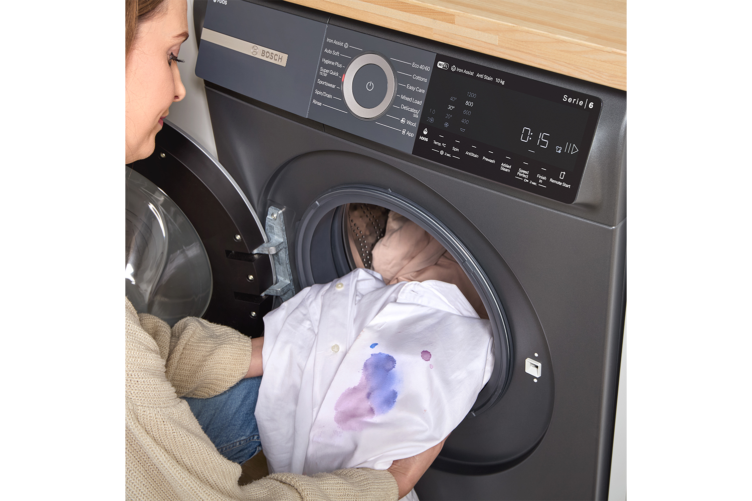 With the Anti Stain system, your washing machine can tackle four stubborn types of stain with ease. It automatically adjusts the temperature, drum movement and soaking time to easily remove up to four of the most stubborn stains fully automatically. It’s the perfect way to remove butter or oil, grass, red wine and blood stains.