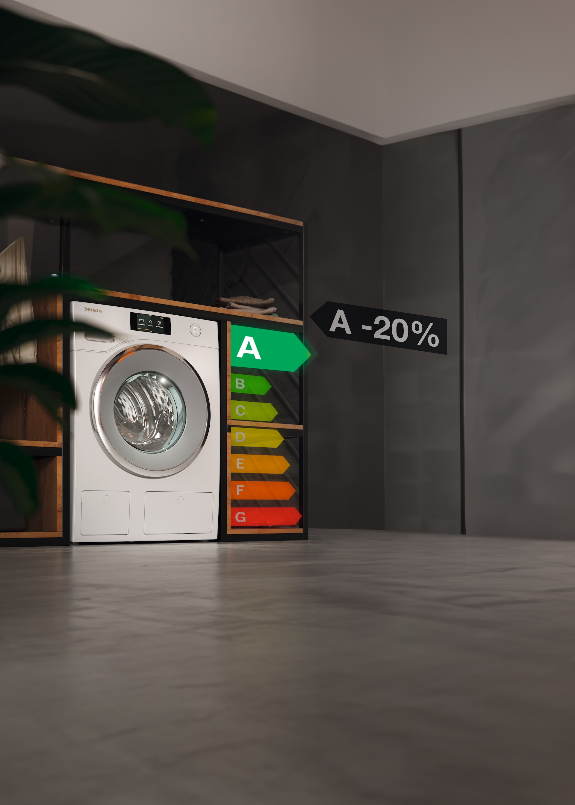 Miele washing machines have been specifically designed to cut down on water and energy consumption. This means that some models save as much as 20 % [10] more than the highest energy efficiency class, A. So you benefit from first-class energy and water efficiency with outstanding wash results and short programme running times.