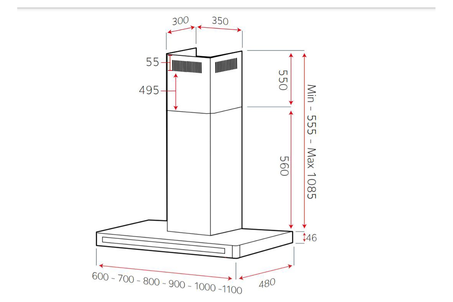 This cooker hood also has easy access to grease filter with a flip down glass front panel, very high extraction rates 800m³/hr and must be fitted on minimum 5” ducting.
