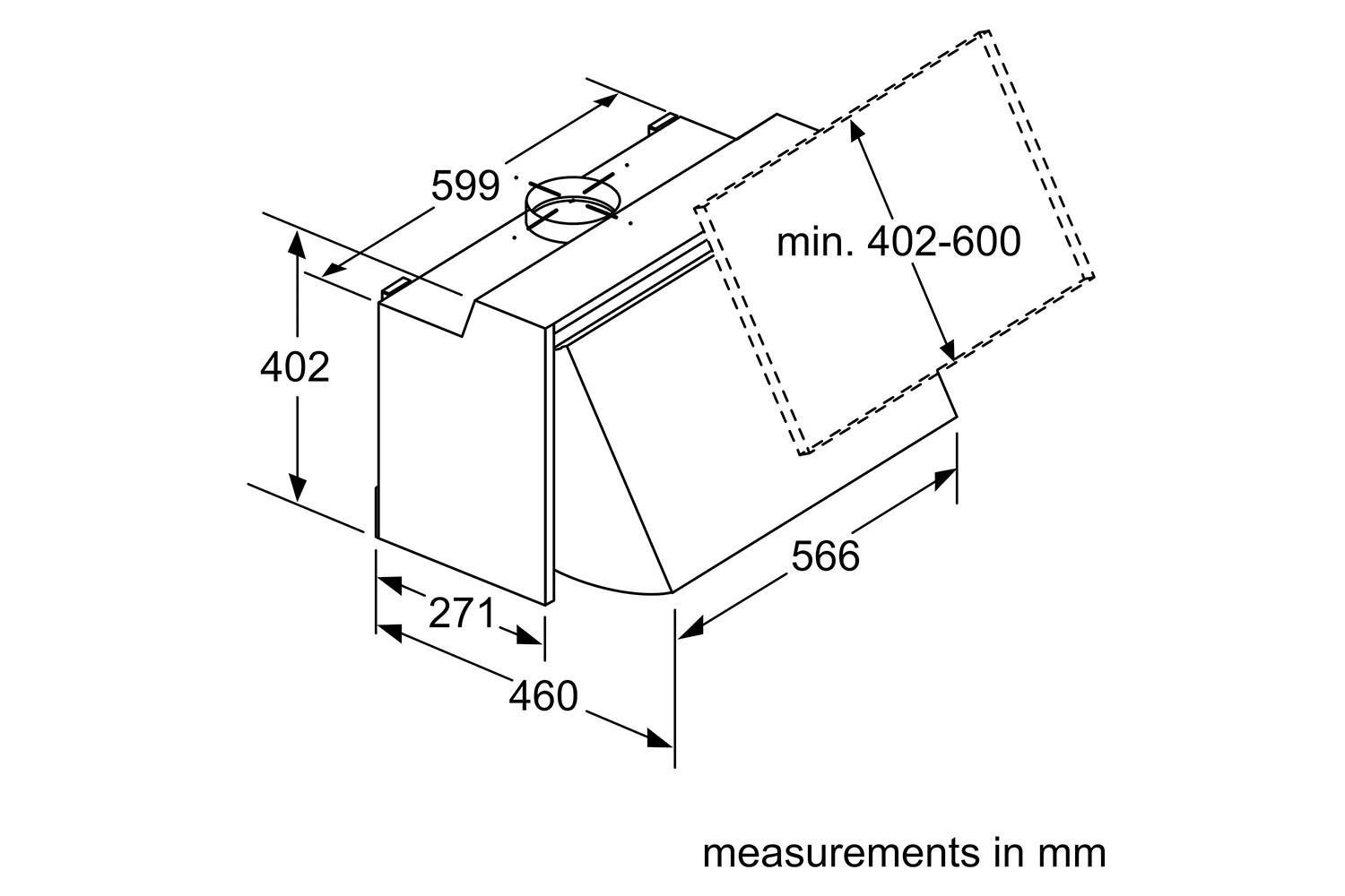- Dimensions exhaust air (HxWxD): 402-402 x 599 x 271 mm