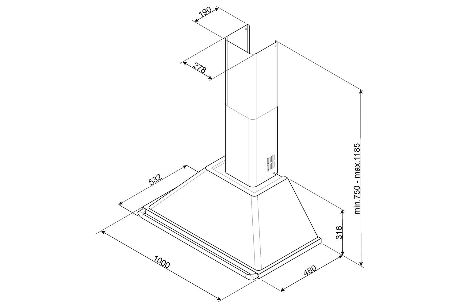 A classic design that combines traditional and modern styles giving it a versatile look that will slot perfectly into any kitchen. This hood features all the necessities and as it is made by Smeg, it offers quality throughout. It has 3 speeds plus intensive for removing strong odours that are lingering in your kitchen. Two 2W LED lights illuminate your hob giving you a clear view whilst adding ambience to the kitchen.