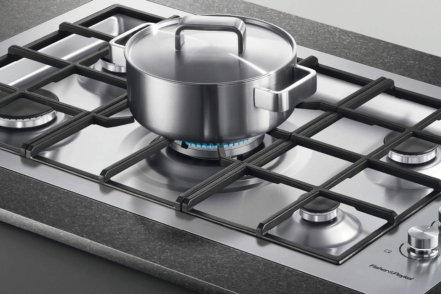 This Gas Cooktop’s burners are recessed into the work surface leaving the trivets flush and providing an integrated kitchen bench with a seamless look.