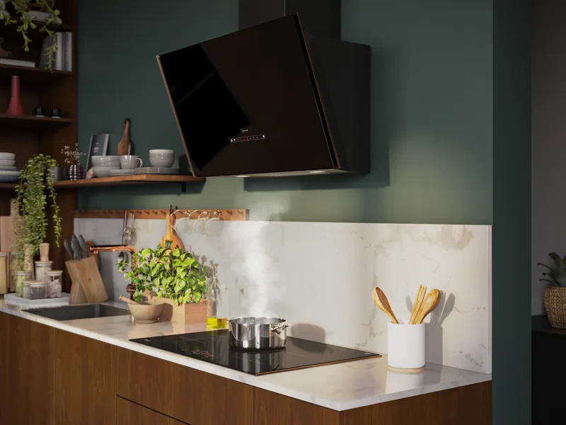Now you can focus on perfecting that latest cooking technique without worring about your hood settings. All thanks to a special algorithm, your hood is automatically controlled by your hob and a connected Home Connect account. As soon as you start cooking, your hood turns on automatically, and selects the right extractor power. So your kitchen stays free of smells, and your hood stays free of finger prints.