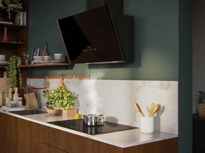 Now you can focus on perfecting that latest cooking technique. The matching hood is automatically controlled by your hob and a connected Home Connect account. It is all thanks to a special algorithm, which adopts your hob settings during cooking. As soon as you start cooking, your hood turns on automatically, and selects the right extractor power. Your kitchen stays free of odours and vapour, and your hood stays free of finger prints. Welcome to an easier way to cook.