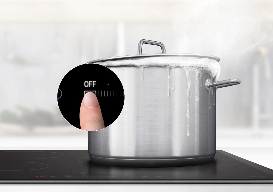 The Samsung Induction Cooktop’s Quick Stop function instantly minimises the impact of accidents. You can immediately turn off cooking zones with the simple touch of your finger to stop pots from boiling over or pans from burning. And if you need to leave the kitchen, the Quick Stop function ensures you can safely walk away.