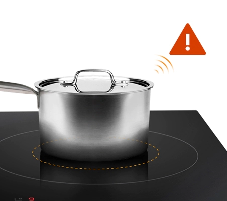 The Samsung Induction Cooktop incorporates an Auto Pan Detector to ensure that you use the right cookware for each cooking zone. When a pot or pan is placed centrally on a cooking zone, it instantly detects if the diameter and size is suitable for that zone. If they cover less than 60 percent of the zone, it will alert you with a message to use different cookware.