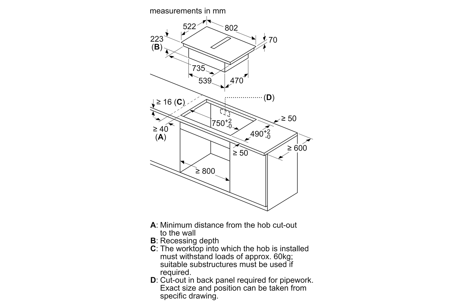 Hob Width 802 mm