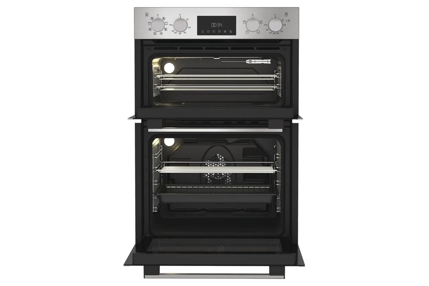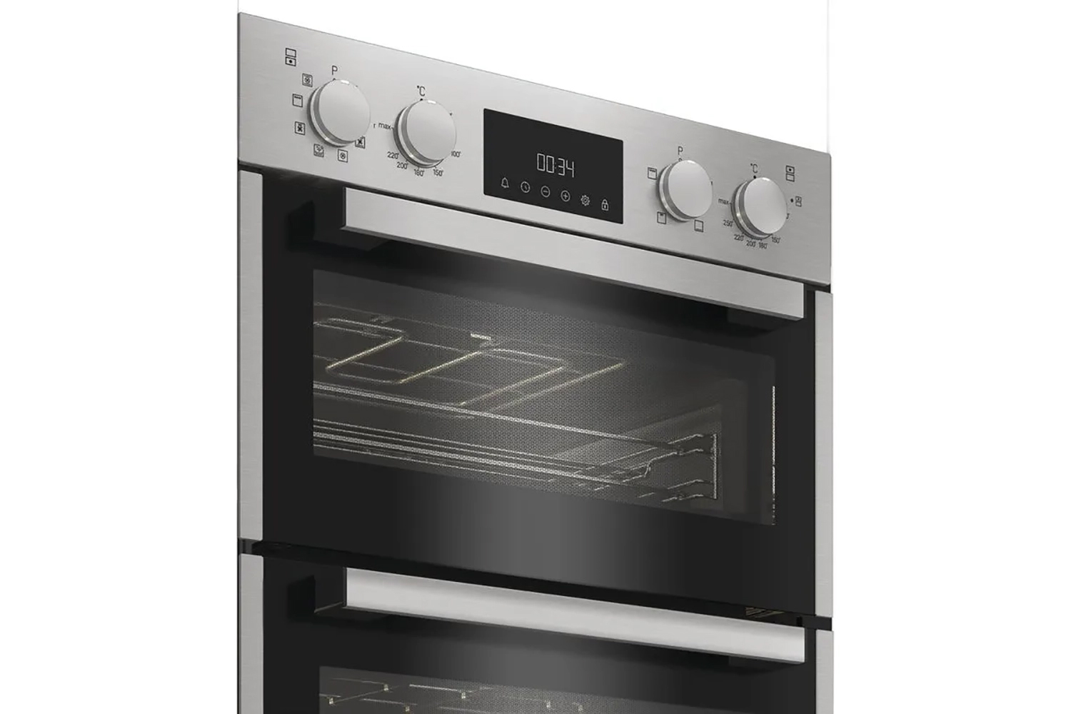 When you need the flexibility of extra cooking space, this Hotpoint double oven has you covered. With a generous 71L main oven and an additional 38L top oven, there's plenty of room for all your culinary creations - from quick weekday meals to the largest of hearty feasts for family and friends. Featuring a classic stainless steel design, 8 cooking functions and an intuitive digital display, you can enjoy effortless cooking and delicious results every time. The Twin Grill gives you full control by choosing whether to use the entire grill's surface or just half if you're cooking smaller portions, saving you energy without compromising on results. There's also a handy programmable timer that alerts you when your meal is ready, so you won’t have to worry about overcooking dinner. When it comes to cleaning, let Hotpoint do the hard work for you. The self-cleaning catalytic panels in this double oven catch grease and fat splatters, burning them off while you cook so any residue can be wiped away. Perfect for a busy family home, so you can enjoy more time doing what you love.