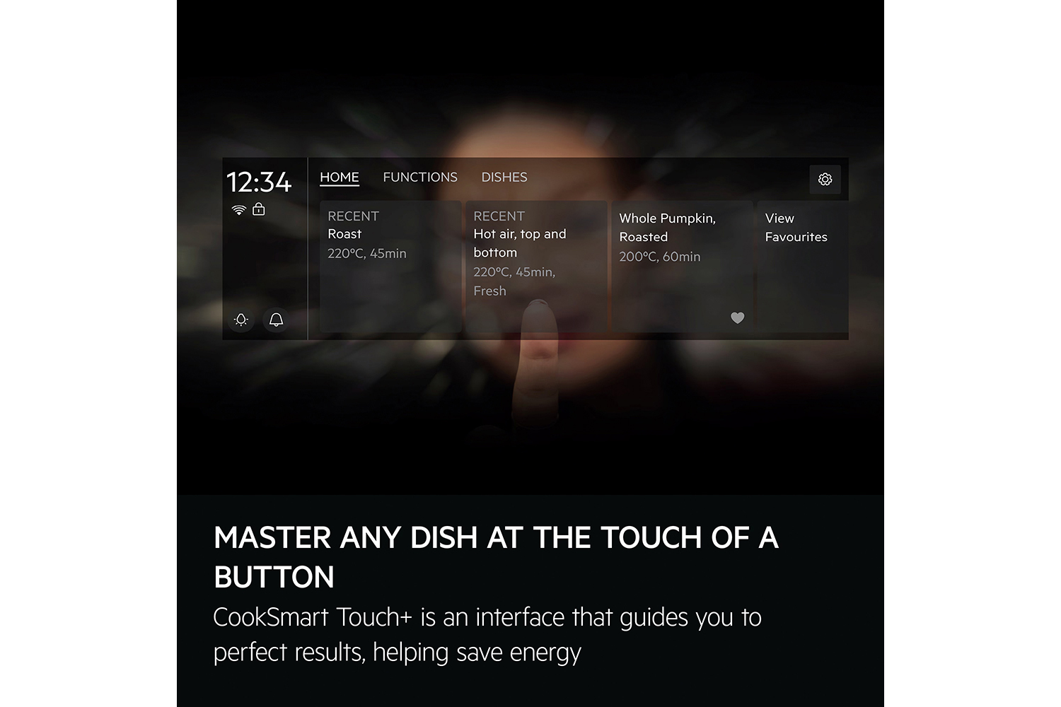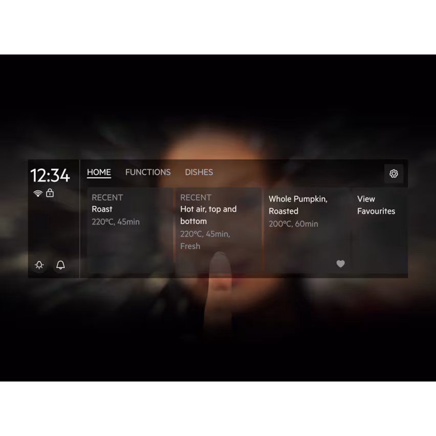 CookSmart Touch+ is an interface that enhances your cooking experience, guiding you to perfect results while helping save energy. Your favourite dishes and methods can be saved on the app and sent to the oven at the touch of a button.