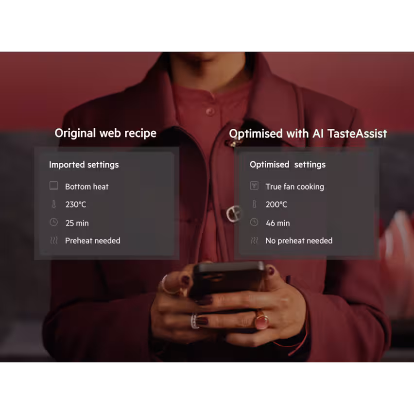 Remove any guesswork and enjoy your oven's full capabilities with AI TasteAssist. Simply send a web recipe to your oven via our app and let AI optimise the time, temperature and functions, bringing out the best in every dish.