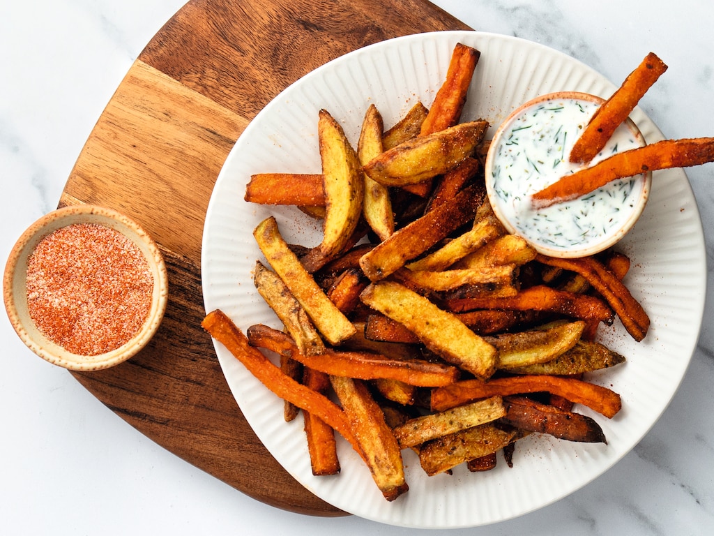 Cook crunchy and crispy French fries or poultry in a hot air stream and without adding fat.