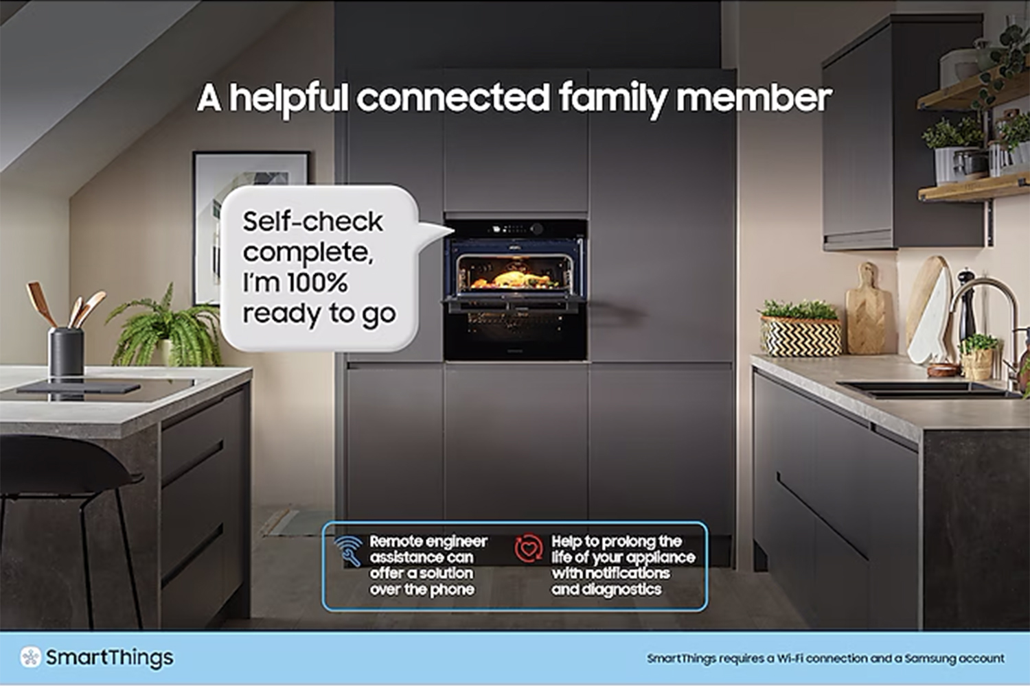 * Requires a wireless network and the Samsung SmartThings App. The Samsung SmartThings App supports Android OS 4.0 (ICS) or later, which is optimised for Samsung smartphones (Galaxy S and Galaxy Note series). This App also supports iOS 7 or later for iPhone models. The SmartThings App is available in the App Store and Play Store.** Available in certain languages, including English, French, German, Italian and Spanish.*** Only available in the UK and Germany. Other countries will be added soon.