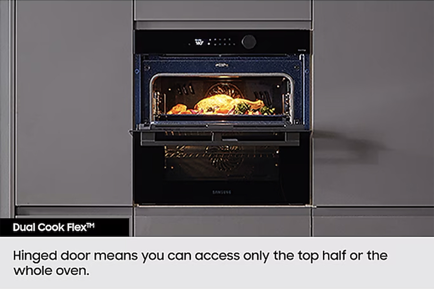 Cook different meals more flexibly and efficiently. Dual Cook Flex's upper and lower zones work independently. Use just the top for smaller dishes, both together with different temperature and time settings or the whole oven for large dishes. And a hinged door lets you access the top easily.
