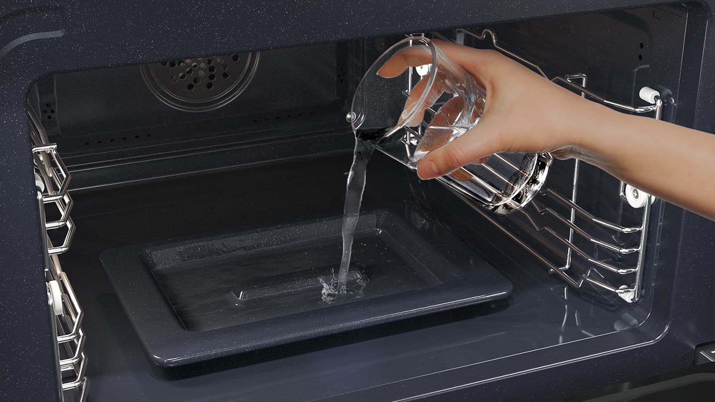 Enjoy deliciously juicy, but crispy food. To use Natural Steam* simply place the dedicated tray on the bottom of the oven and pour water onto it. This then creates steam while you are cooking. It helps retain food’s natural moisture, so it is juicy and tender inside, but brown and crisp outside.