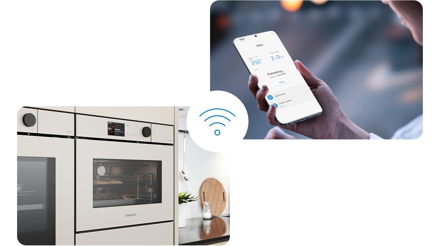 Save time and do more with Wi-Fi Connectivity. Simply monitor and control the oven anytime, anywhere using an App*. It lets you preheat the oven or turn it off. You can also check and adjust the cooking temperature and time or quickly select pre-programmed settings. And it helps you fix errors!