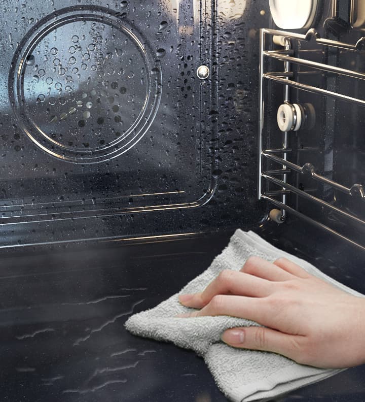 Get rid of light soiling much more easily. Compared to traditional oven cleaning, Steam Cleaning needs less time, power and effort to remove drips and splashes. It creates steam that loosens food particles, so any residue can be wiped away without scrubbing, leaving the oven sparkling clean.