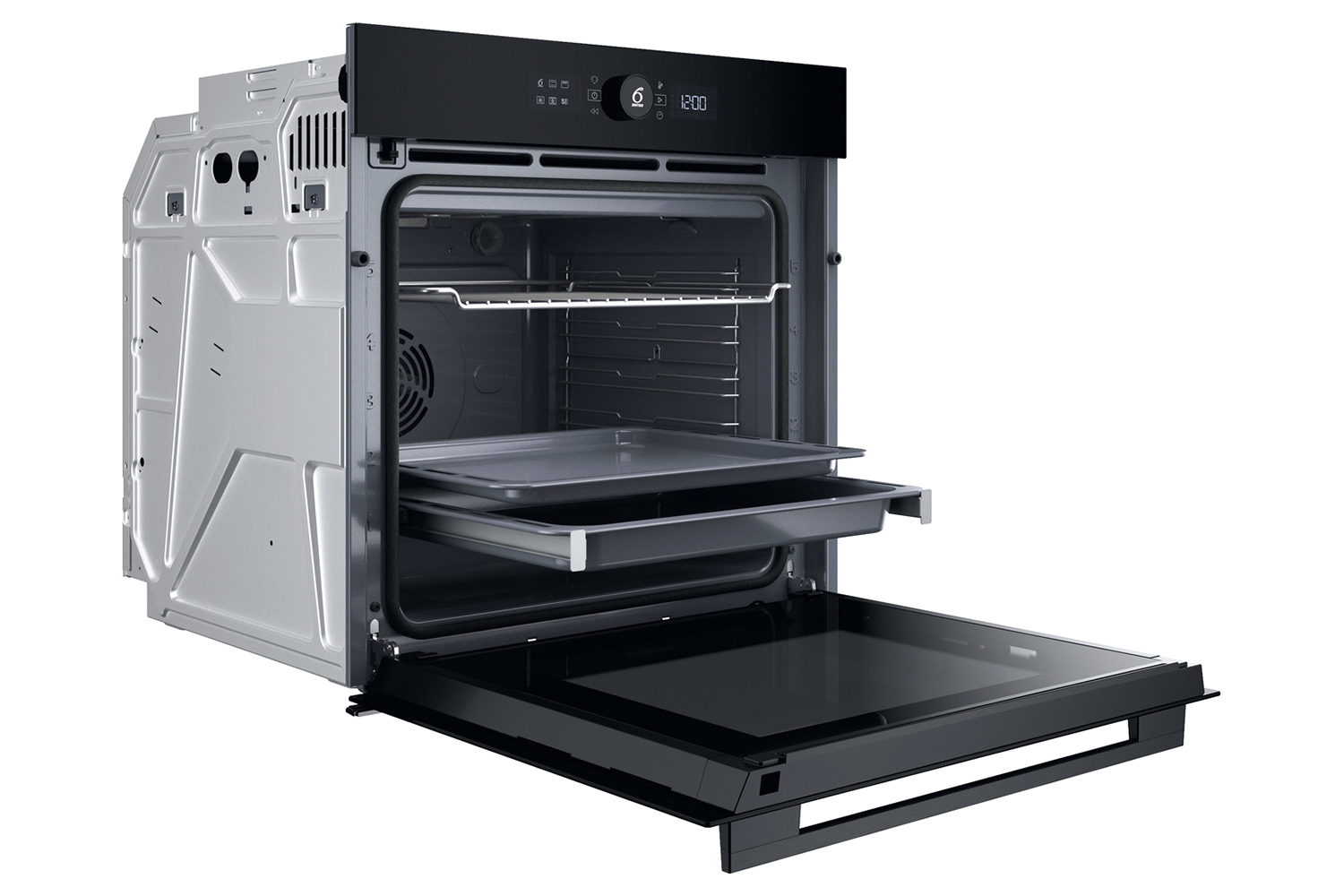 This Whirlpool built in Oven features: advanced electric technology allowing you to cook dishes saving energy. Halogen lamp allowing a more energy-efficient performance. Exclusive 6th SENSE technology, that allows you to pick among a variety of pre-programmed recipes, and your oven will automatically adjust cooking, temperature and time settings, to ensure perfect results. Ready2Cook function, removes the need to pre-heat, a powerful convection system within the oven quickly reaches the right temperature to cook. Innovative Cook4 function, that allows you to cook up to 4 separate dishes at the same time, without the risk of aromas mixing.