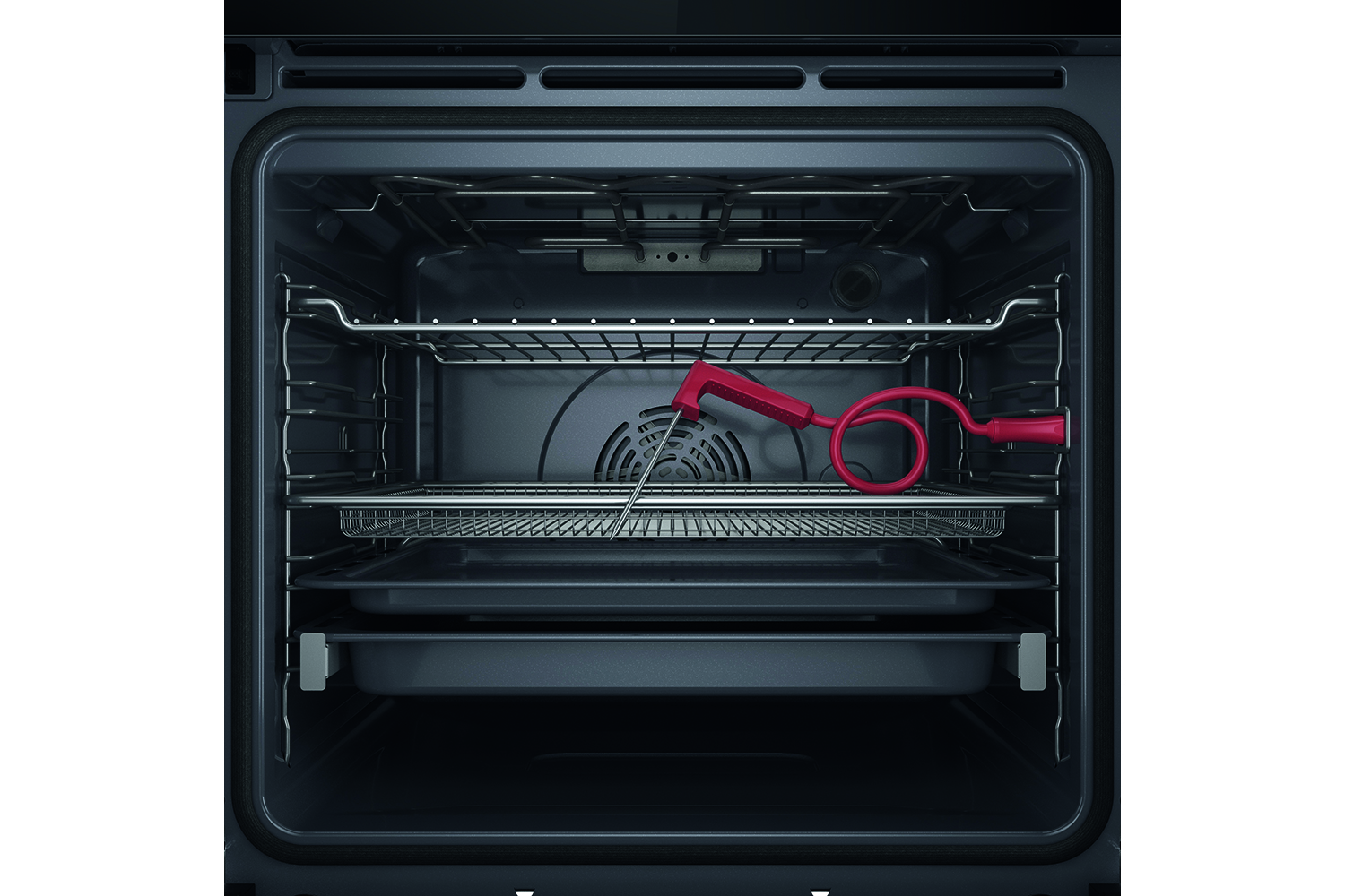 The food sensing probe monitors and controls the food's temperature for both meat and liquid based dishes, thanks to it's self supporting cord.