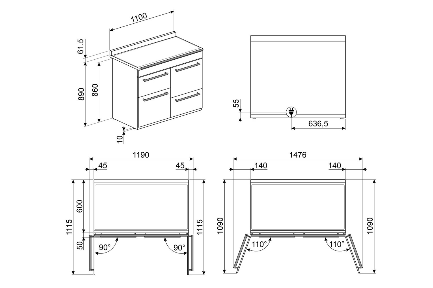 The 110cm wide SYD4110-1 cooker features a multifunction main oven and auxiliary oven, both offering conventional and fan cooking. They each have a generous 61 litre net capacity, 4 shelf positions and feature side opening doors.In addition, there is a separate 36 litre fully variable grill for controllable closed door grilling on two levels, as well as a convenient pullout storage drawer for pans and baking trays.