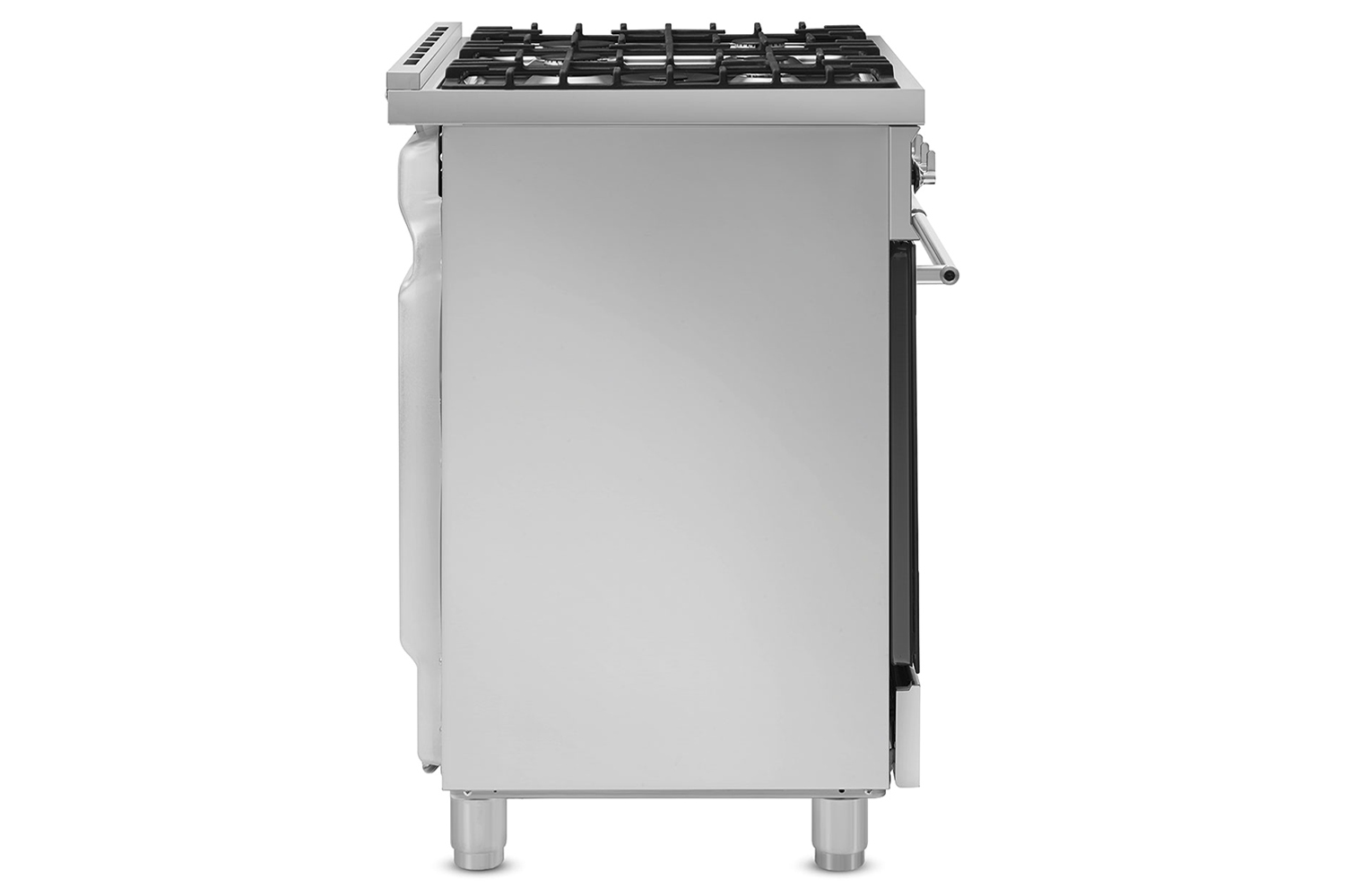 Spacious and versatile cooker perfect for preparing several dishes at once, equipped with electric ovens and a gas hob: efficient and responsive, the visible heat source allows total control and the choice of the right intensity.