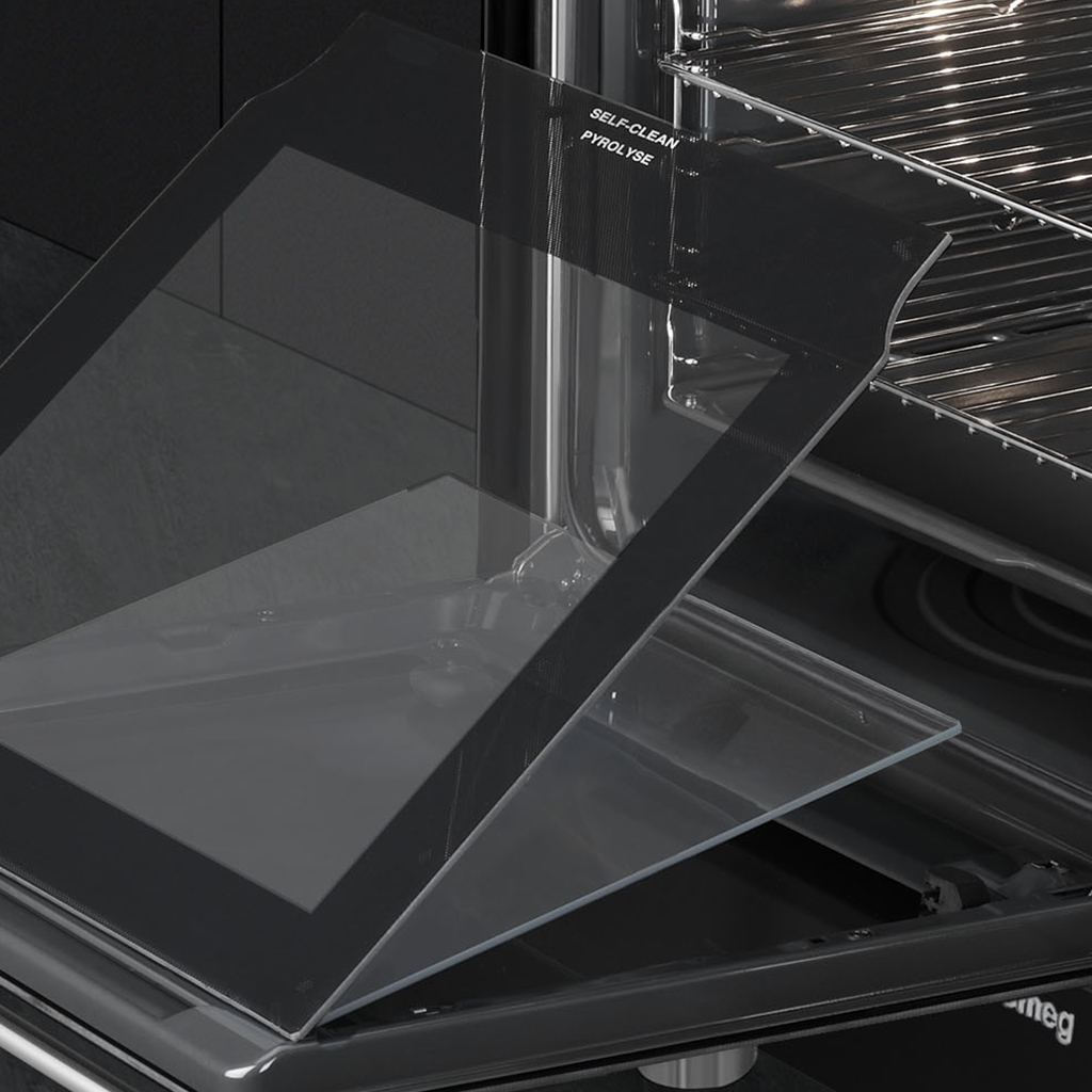 The all-glass surface, completely smooth and without screws, facilitates the removal of dirt, while the glass of the inner door is easily removable to allow thorough hygiene.