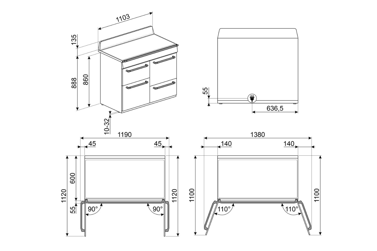 • Cooker size: 110 x 60 cm