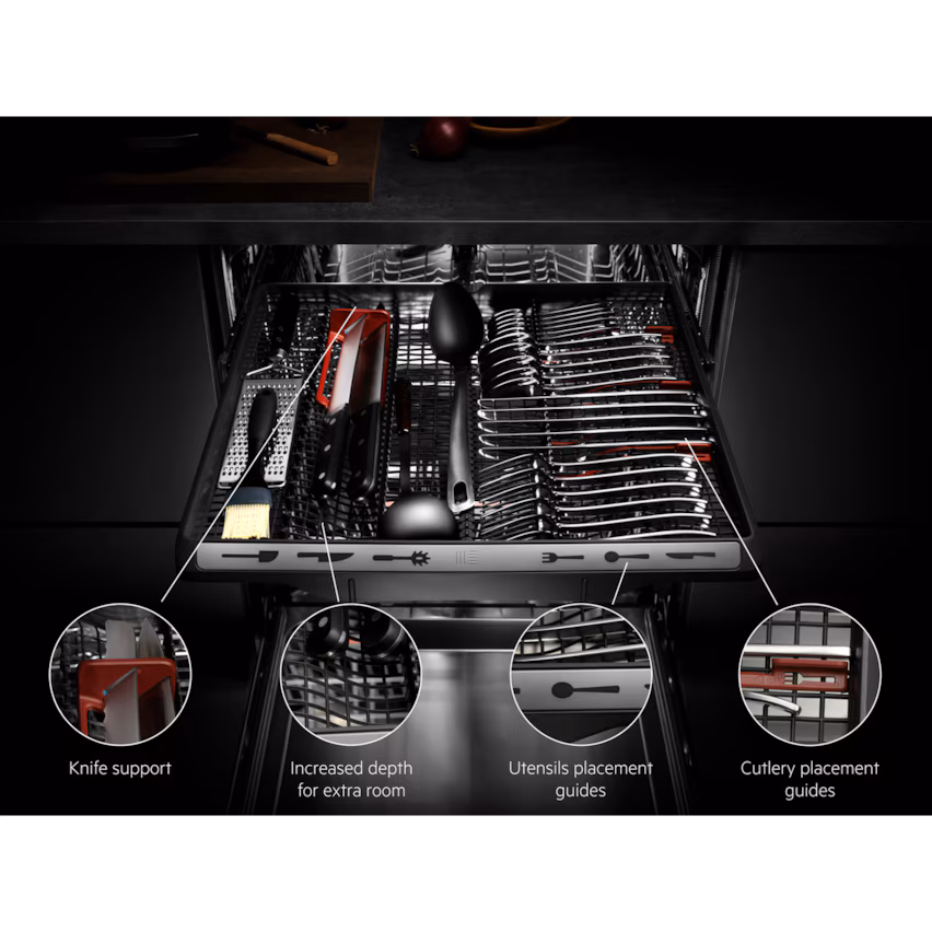 The MaxiFlex drawer is engineered to accommodate cutlery and utensils of many sizes, whether large or awkwardly shaped. Flexible dividers and maximised depth mean each load is customisable. Essentially every item is seamlessly loaded and cleaned in one go.