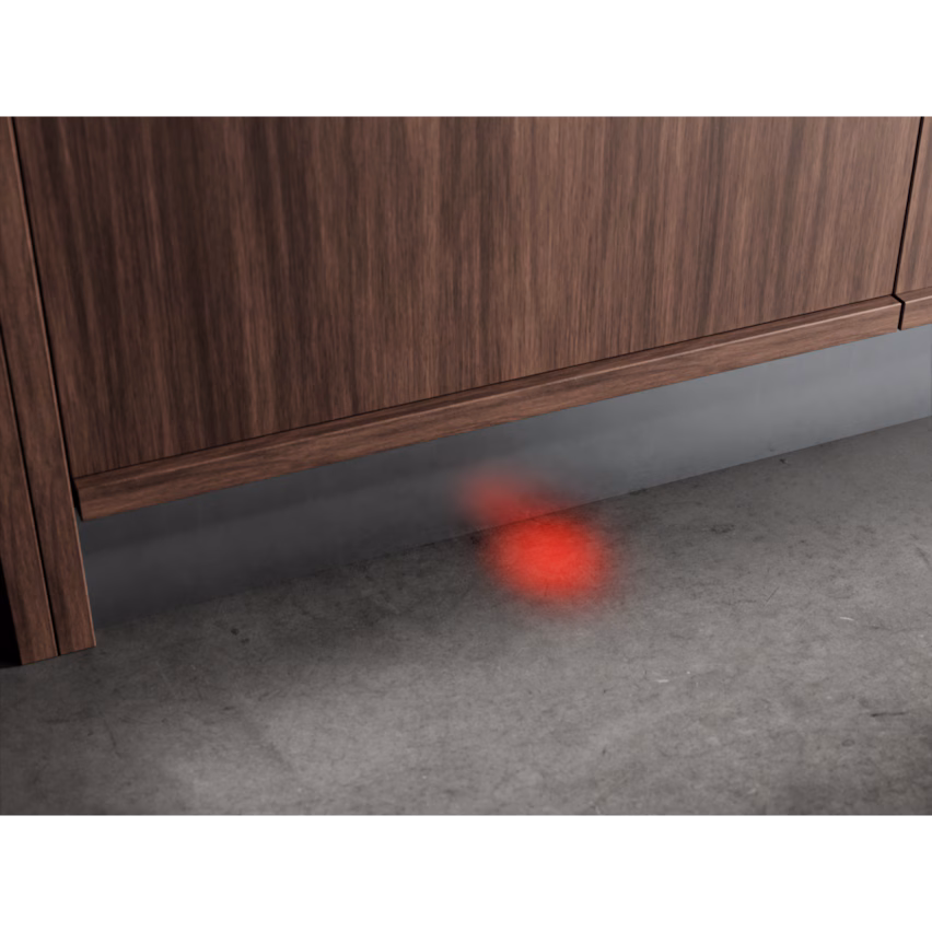 This dishwasher has a clever way to keep you fully up to date with the status of your dishes. Its beam-on-floor technology projects a red light onto the floor while the cycle is still in progress. And when everything is ready to unload, it switches to a green one. Simple, and effective.