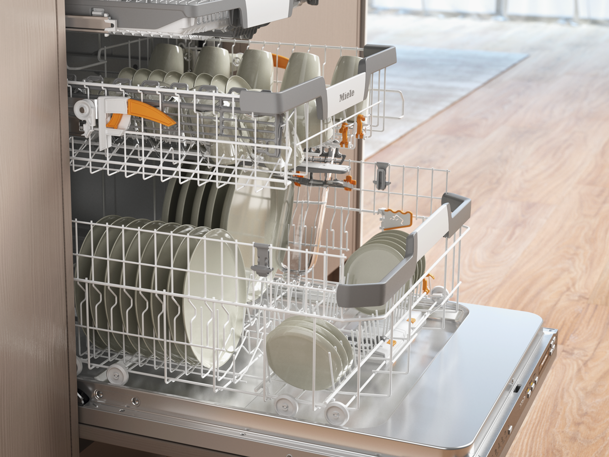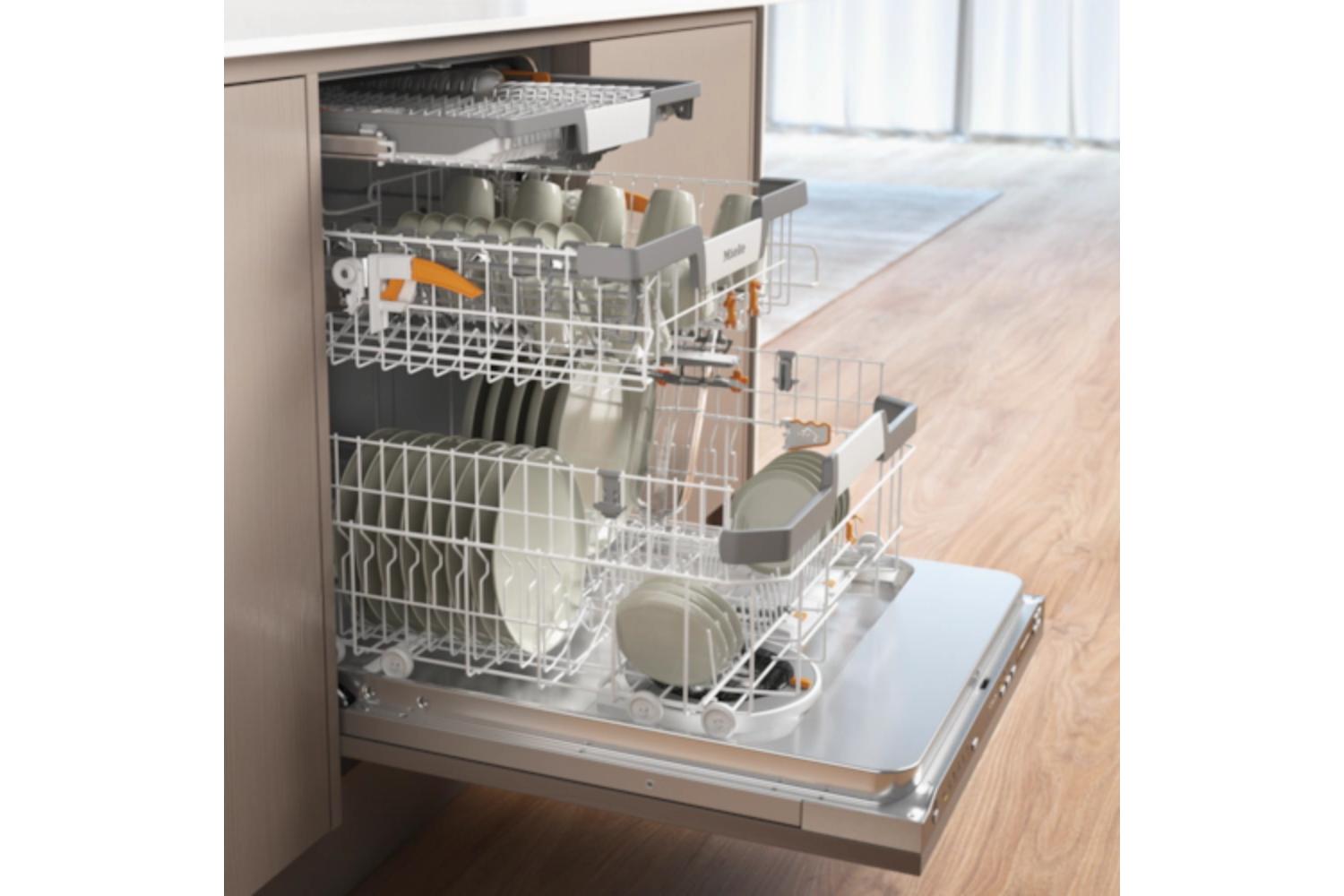 Miele dishwashers offer space for up to 14 standard place settings. Miele baskets ensure that Miele comply with the relevant standards while also fulfilling your wishes and needs – all your items will be perfectly positioned and are thoroughly cleaned and dried.