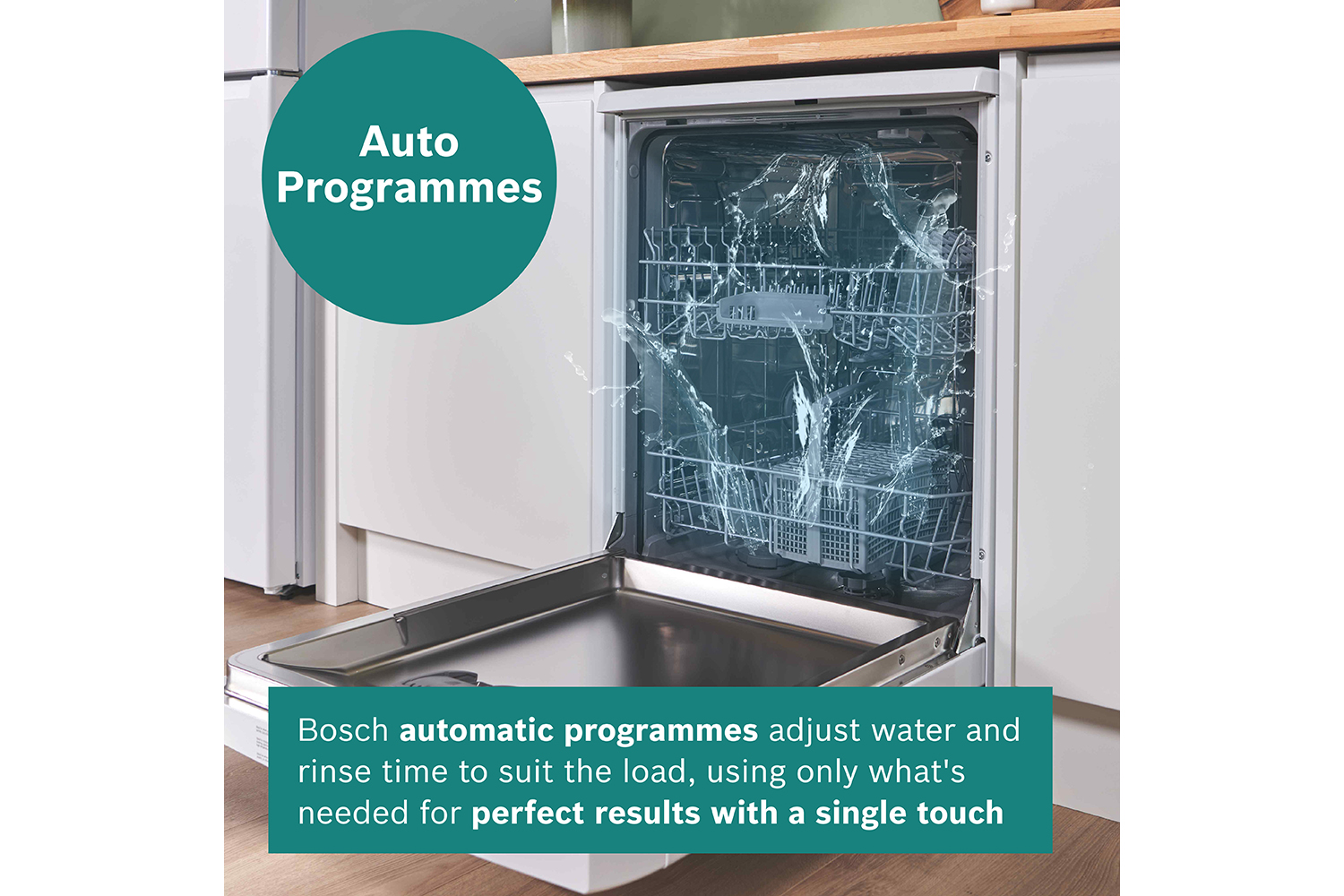 Plastic items in dishwashers often remain wet after the cleaning is done. That’s why Bosch dishwashers offer the ExtraDry programme. It raises the temperature of the final rinse and extends the drying time. This way, even plastic items such as baby bottles or picnic-ware turn out perfectly clean and completely dry.