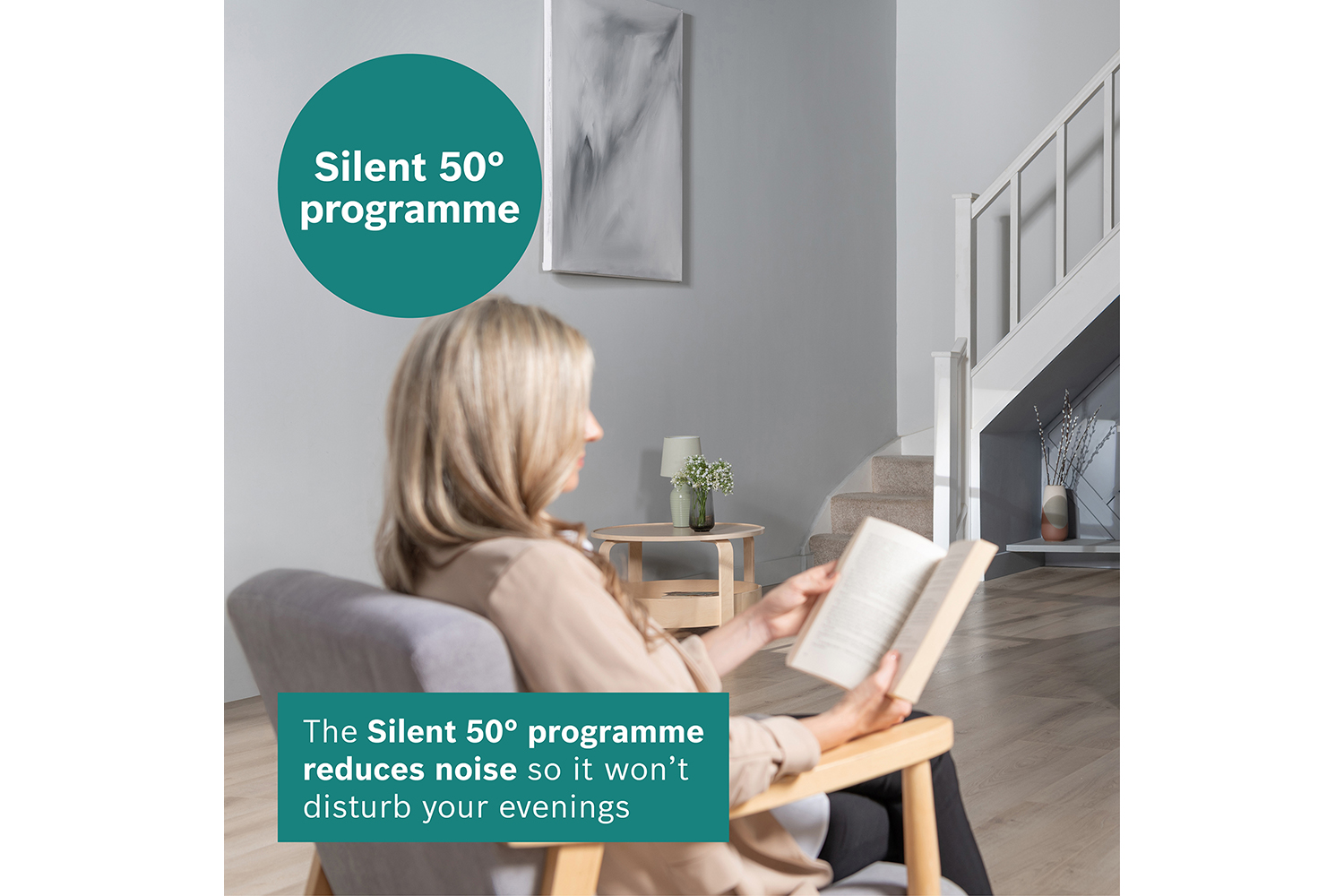 The silence program is the quietest way to run your dishwasher. By activating it, you automatically reduce the noise levels of your dishwasher to the lowest minimum possible. This is achieved by an especially adapted Eco 50°C program, a reduced spray pressure and extended cleaning phase.