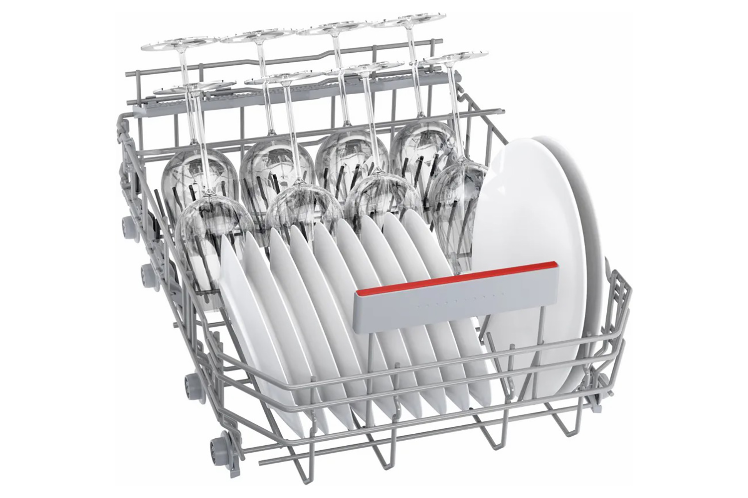 Thanks to the triple Rackmatic system, the height of the top basket can easily be adjusted by up to 5cm, or tilted to just one side so you can fit in large pots and tall stem wine flasses, and still fit your large dinner plates on the bottom rack. And you can do this when its fully loaded, givinvg you more adjustment options and maximum flexibility.