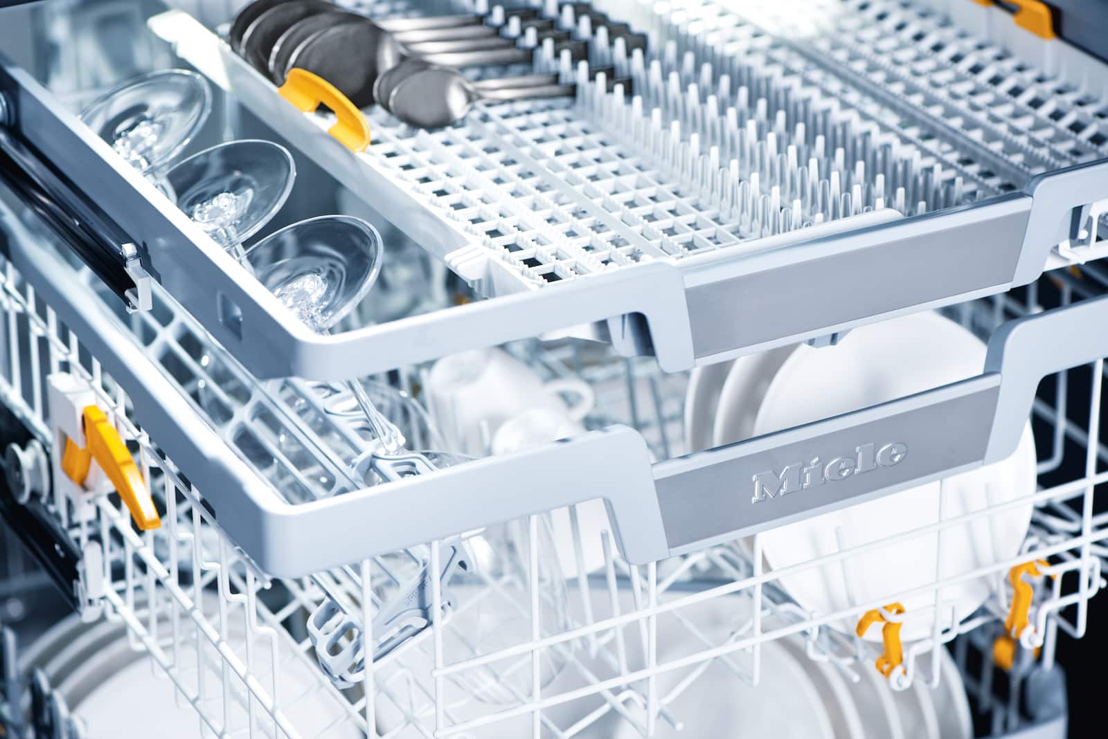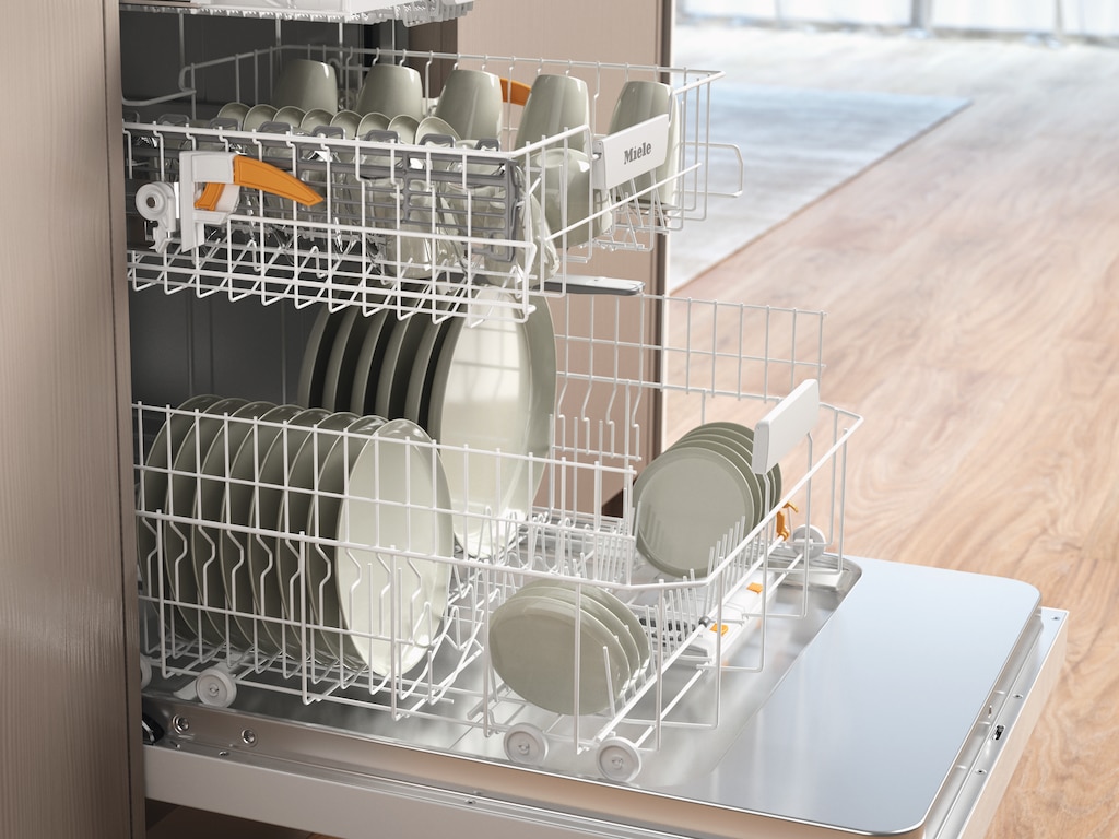 Miele dishwashers offer space for up to 14 standard place settings. Miele baskets ensure that we comply with the relevant standards while also fulfilling your wishes and needs – all your items will be perfectly positioned and are thoroughly cleaned and dried.