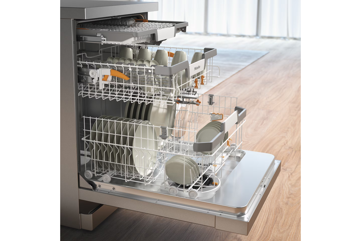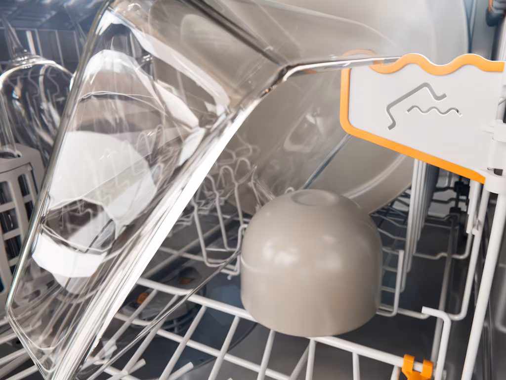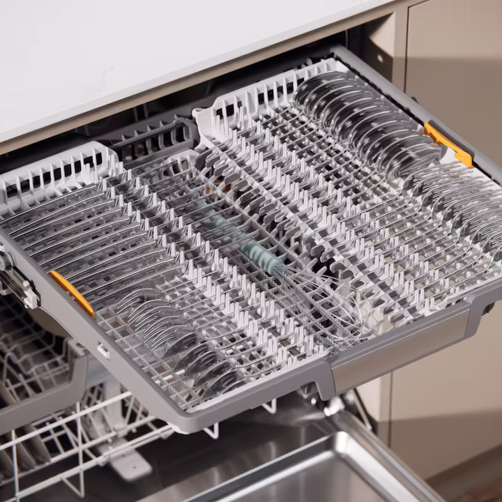 Perfect for large items: you can use XL Assist to position pots and pans in a space-saving way.Whether it’s bowls, ovenproof dishes or pots – even bulky items are held securely in the dishwasher basket thanks to XL Assist. Large items can be positioned quickly in the lower basket and small bowls are easily placed below them. Both sets of items are thoroughly cleaned. The Miele XL Assist is flexible and can easily be folded down if not used. This means that you can perfectly load your Miele dishwasher with all kinds of items.